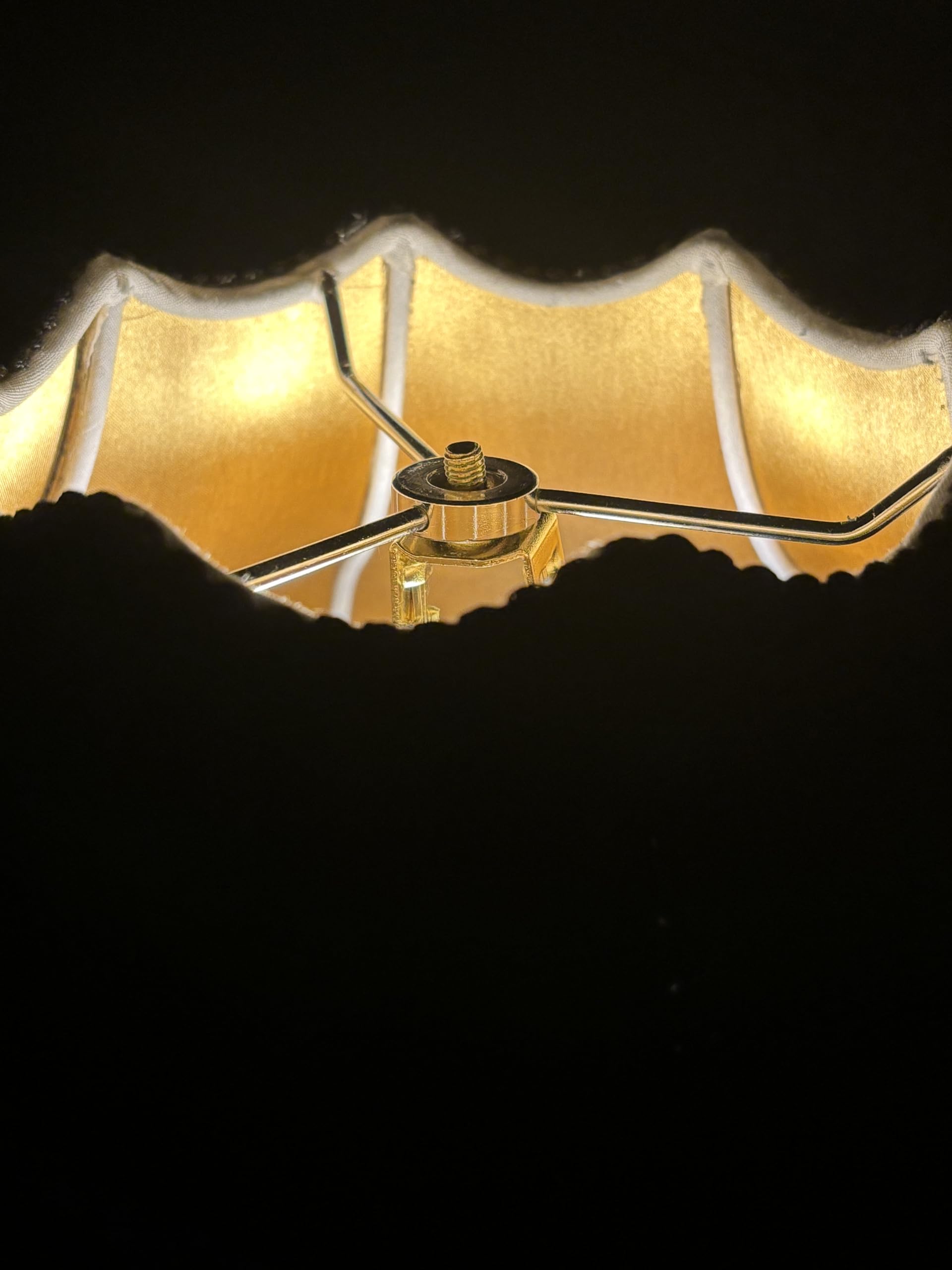 • MATERIAL: High quality thick velvet NOTE: The shade sends light only from the top and bottom. Due to the premium thick dark velvet and gold inner lining we use to make this shade , no light shines through the side of this black lamp shade.