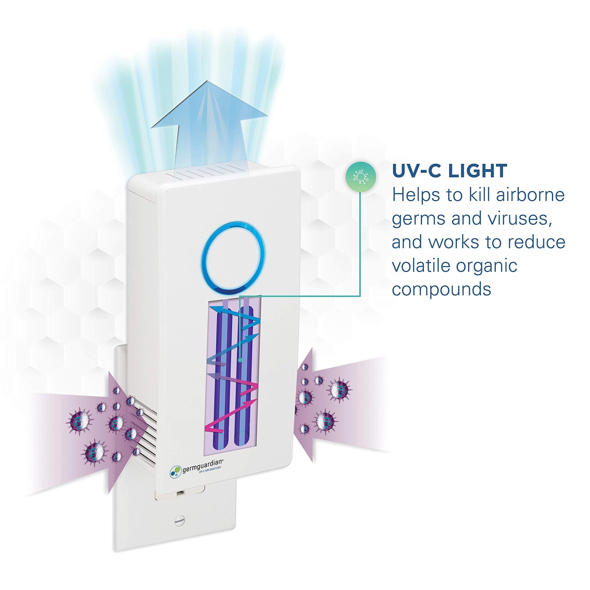 Details: The GermGuardian Pluggable UV-C Sanitizer and Deodorizer provides your home with fresher, cleaner air. UV-C light helps reduce airborne contaminants and works to reduce volatile organic compounds. It's easy to operate and requires no set up or assembly. Its sleek and compact design is ideal for small spaces. Just plug it in to a wall socket to reduce pollution and fight odors in pet areas and more. Designed to pair well with any existing HEPA air purifier, this ZERO-OZONE-verified product releases cleaner, fresher air back into the room and effectively reduces unwanted odors from pets, smoke, cooking fumes, and more. Ideal for small rooms such as bathrooms and laundry rooms, it conveniently plugs into any 120V socket. Say goodbye to filter replacements. This air sanitizer uses only a single GermGuardian UV-C light bulb (Model LB1000, ASIN: B001TLRSOA). It is recommended to replace the UV-C bulb every 6 to 8 months for optimal performance. The efficacy of any UV-C bulb diminishes over time. Adhering to the suggested replacement frequency will maximize your unit’s performance.