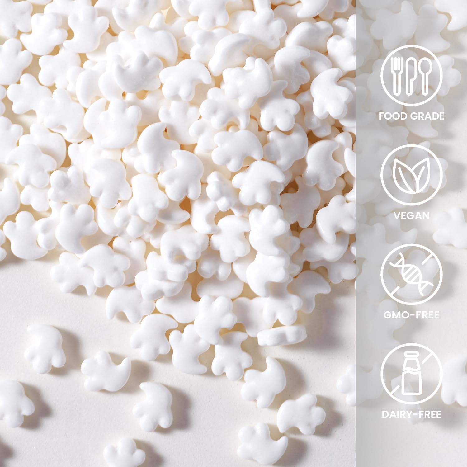 • [ Ghosts Sprinkles ] Our edible halloween sprinkles are non toxic and 100% edible. Use Ghosts sprinkles to decorate cakes, cupcake or cookies after baking to avoid melting. Use raw materials that meet food safety standards