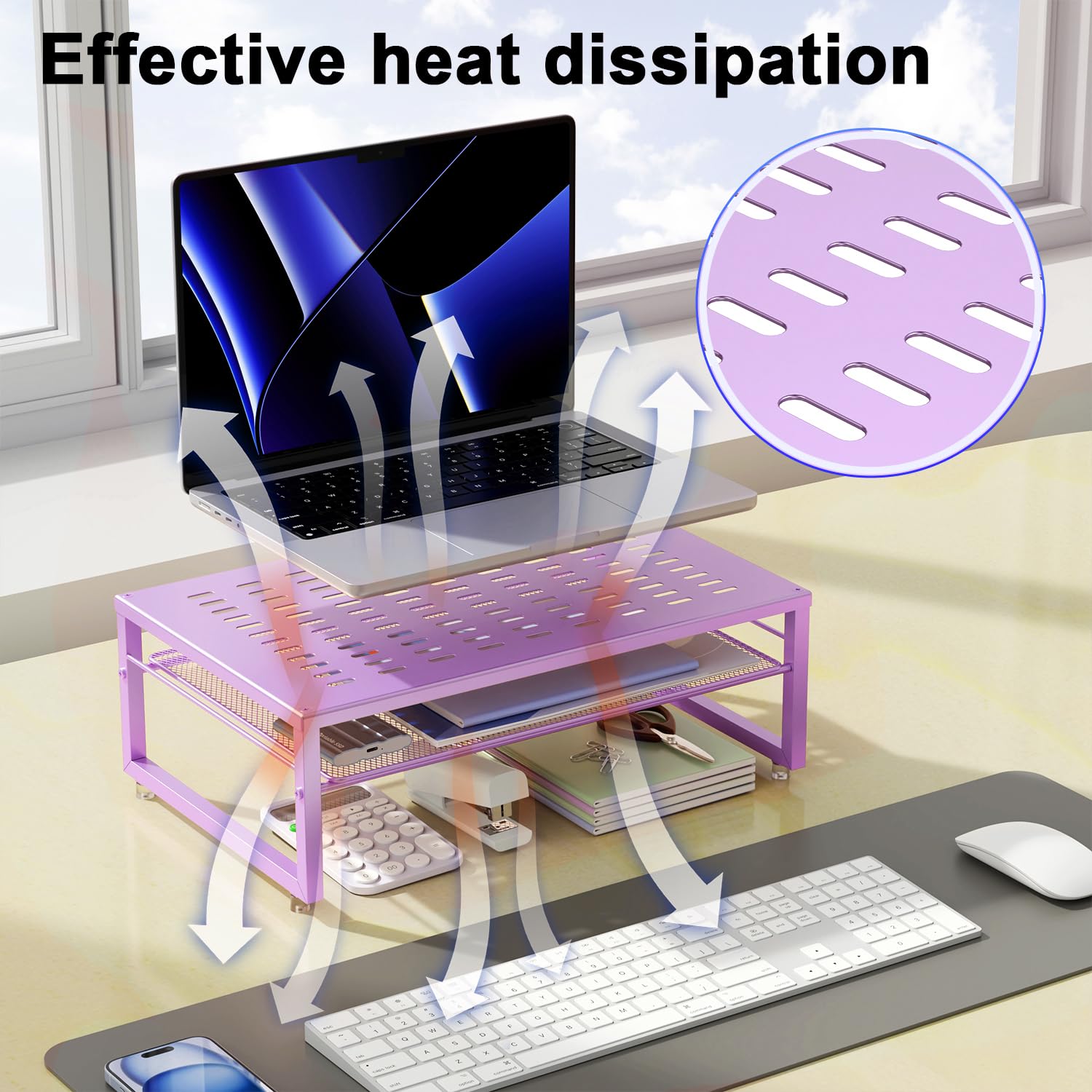 gianotter 2-Tier Metal Monitor Stand Riser, Office Desk Storage Organizer for Computer Monitor, Laptop, Printer, Office Supplies (Purple)
