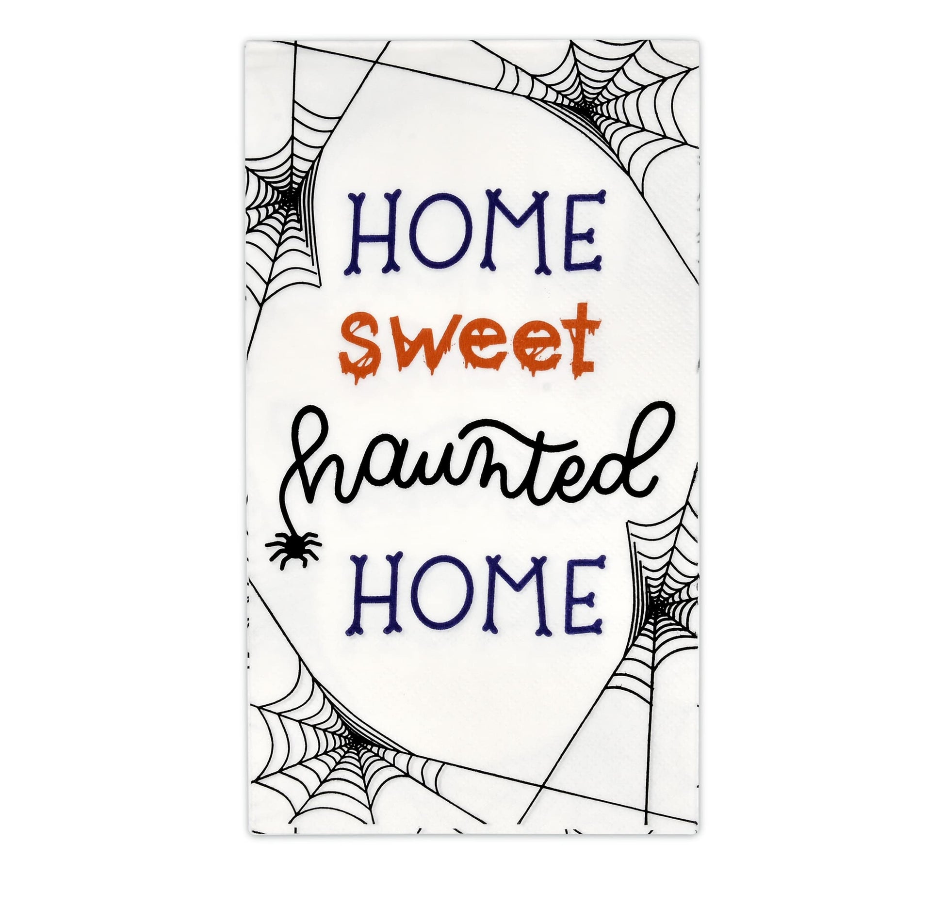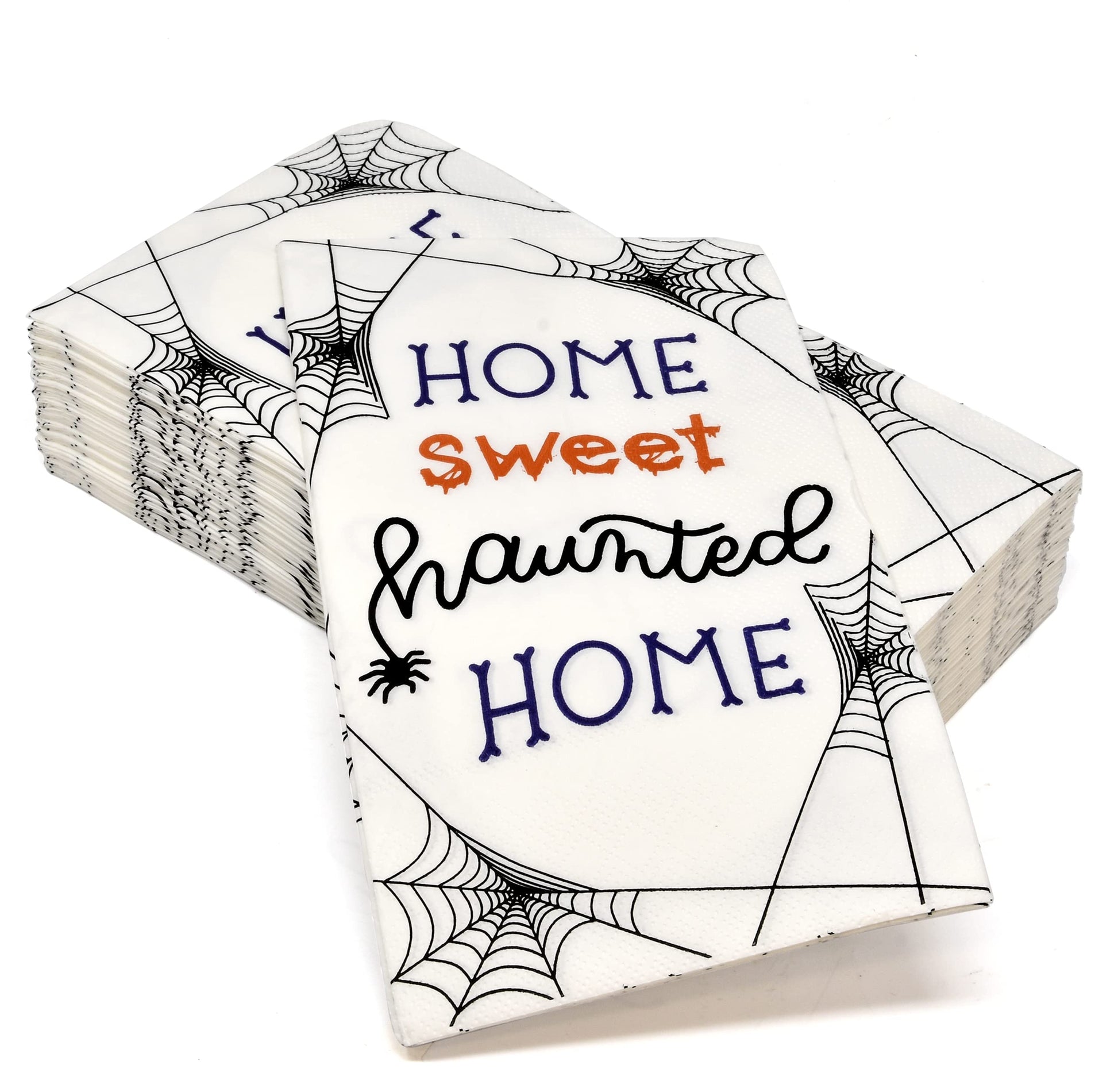 • Halloween Guest Napkins: Gift Boutique Halloween guest napkins includes 100 dinner napkins featuring Home Sweet Haunted Home with a spider border on a white background