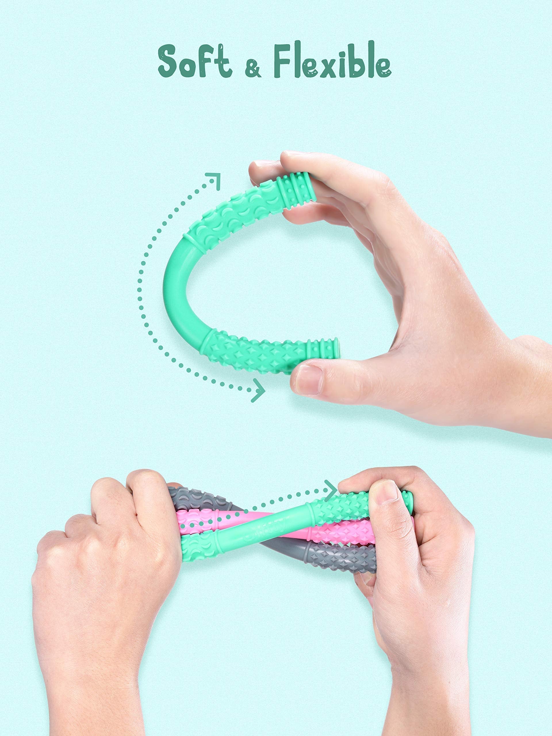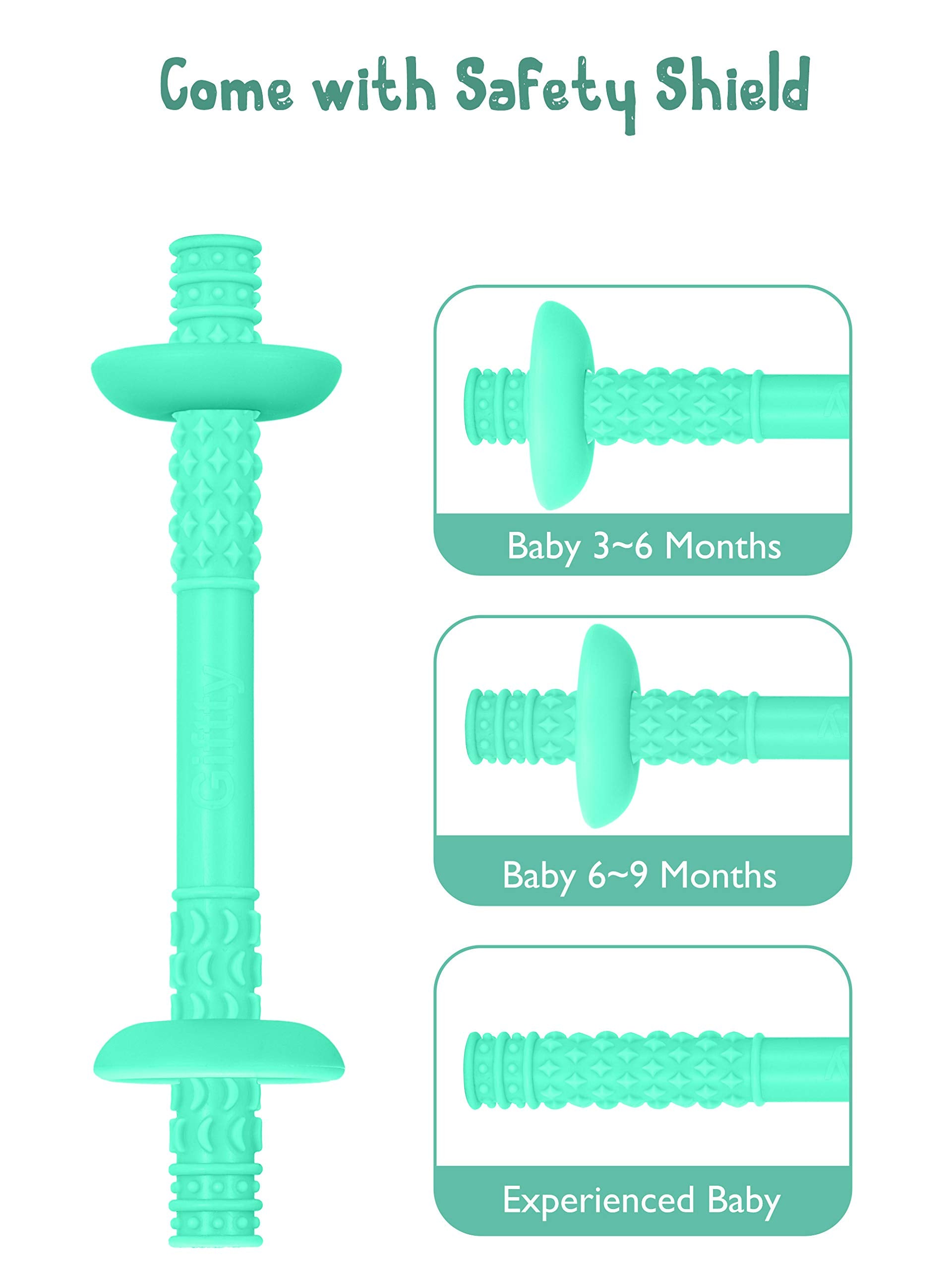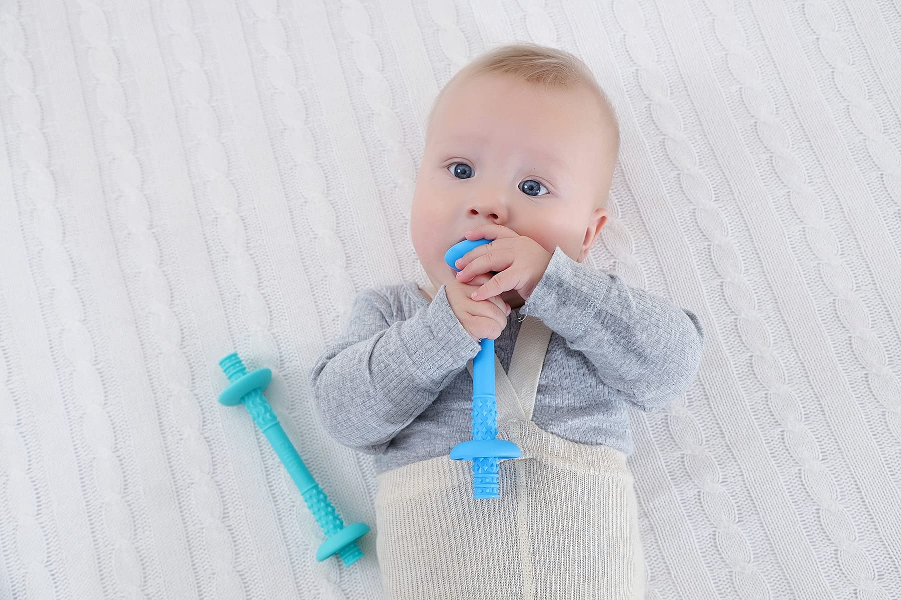 • MULTI-TEXTURE & FUN TO CHEW: There are different textures on each side of the hollow teething tube, providing a great sensory experience for the baby's mouth and preparing them for different food textures.