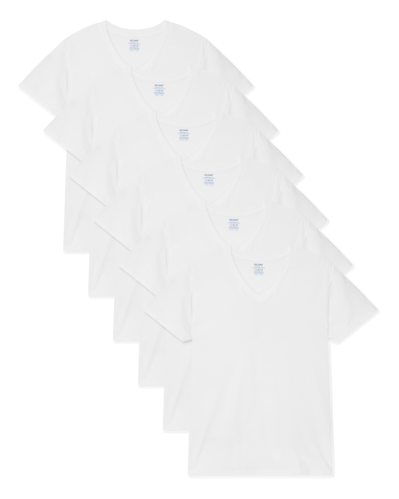 Gildan Men's V-Neck T-Shirts Multipack, White (6 pack), Small
