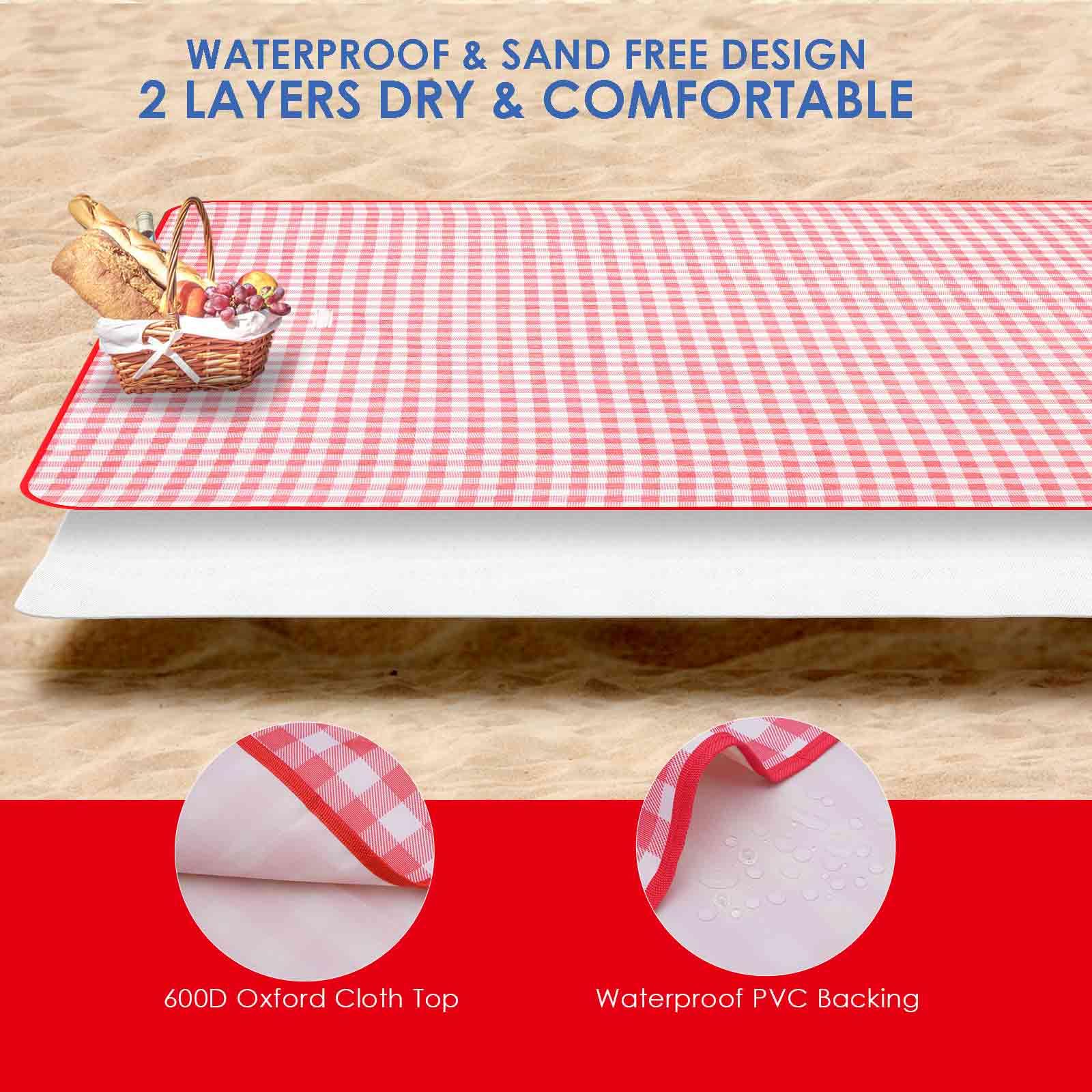 • WATERPROOF & SANDPROOF: Our picnic blanket is completely waterproof & sand resistant thanks to it’s PVC waterproof backing. You can use it wherever the ground is damp like on grass, just give it a gentle shake and all the sand would slide off easily