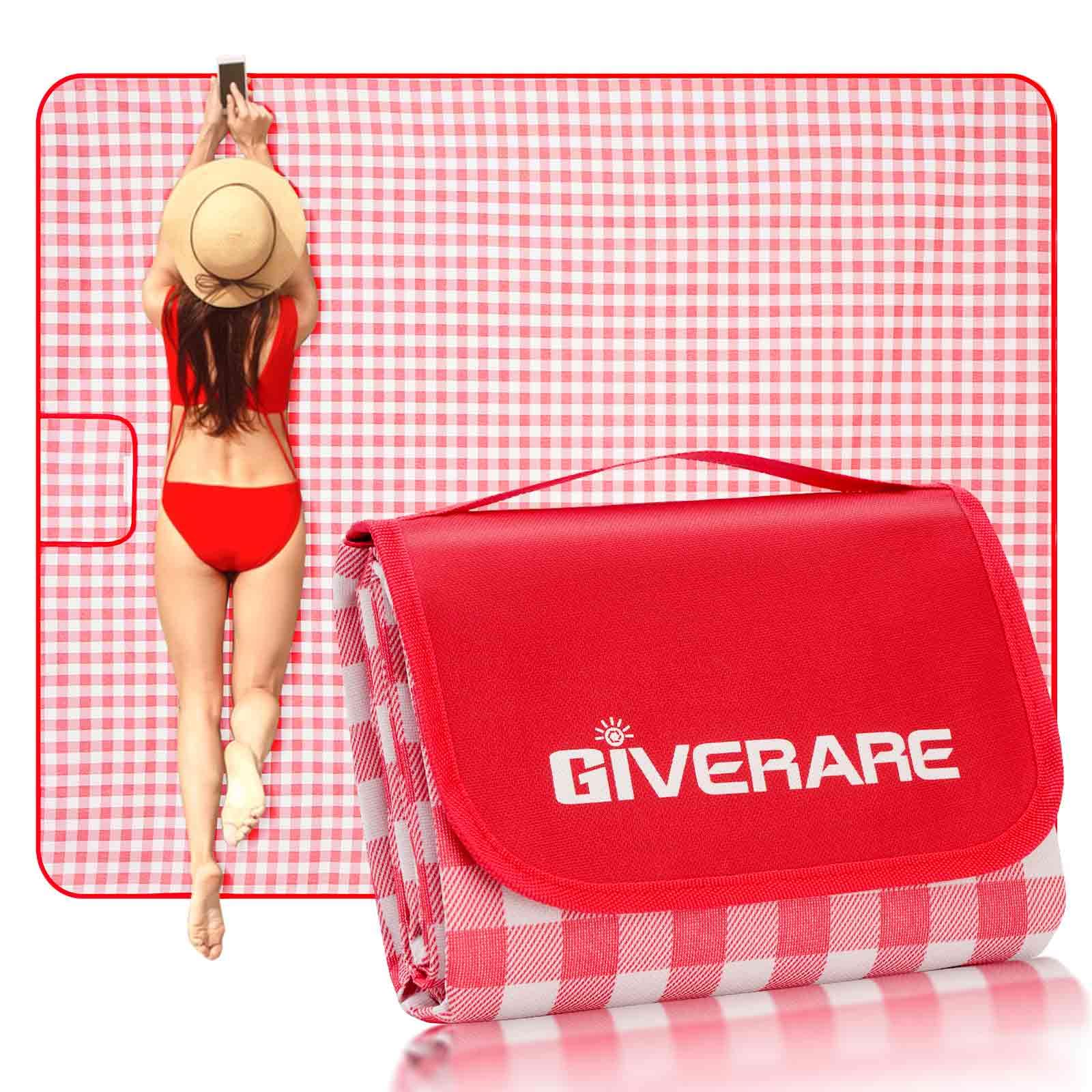 GIVERARE Picnic Beach Blanket Extra Large, XL Sandproof Waterproof Outdoor Camping Blankets 80x60in, Sand Free Oversized Mat, Quick Drying Portable Mats for Travel, Hiking, Music Festival, Lawn-Red