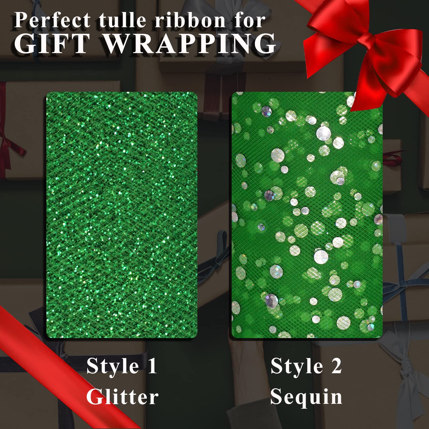 • The stunning glitter tulle. Measuring 6 inches in width and 50 yards sizes ( 150FT ), Whenever it comes to adding extra fun and shine to your crafts and decor, you can never go wrong with sequin tulle roll