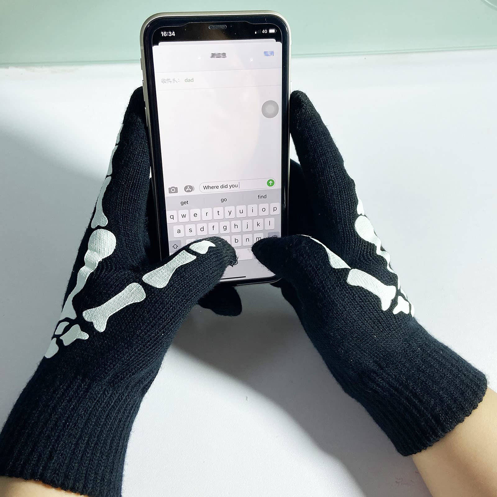 Glovion Skeleton Winter Gloves for Women & Men - Touch Screen Skull Full Finger Gloves for Halloween, Christmas Parties