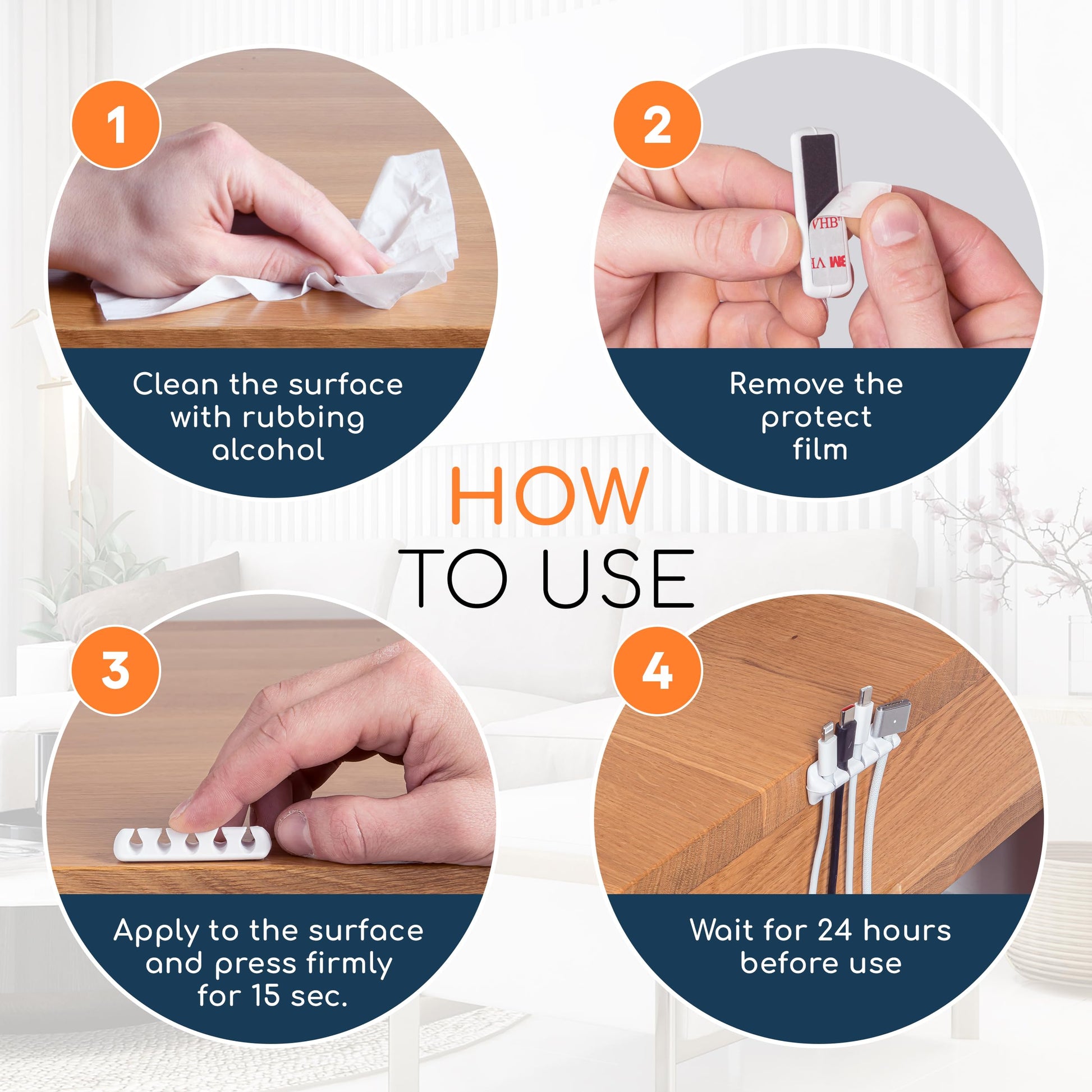 • Easy to Use & Remove: GLUIT cable holders are designed for hassle-free installation and removal. The adhesive backing on wire clips allows for secure attachment to surfaces without causing damage. Cable management system accommodates diverse cable types like phone chargers, USB, power, Ethernet, and audio cables, ensuring a tidy and organized workspace
