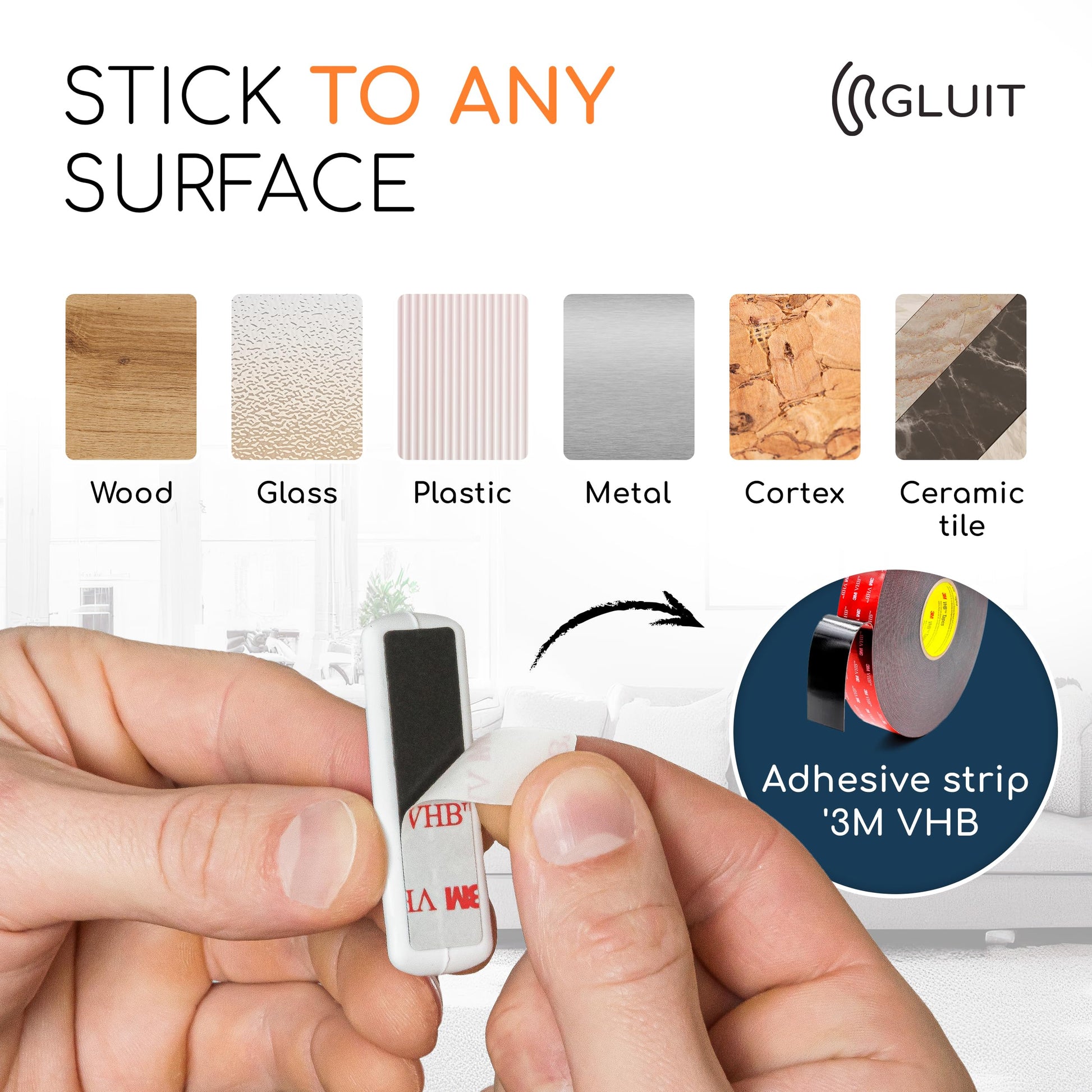 • Secure Cord Holders: GLUIT's dependable cord holders firmly secure cables, preventing slippage or loss. These organizers foster a neat, productive workspace for enhanced focus. Keep your cables organized on any surface with our easy-to-use, adhesive-backed wire clips. These clips are perfect for securing cords, chargers, headphones, and more