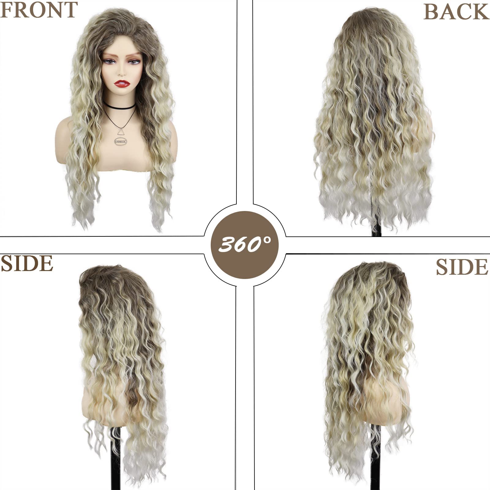 GNIMEGIL 26 Inch Ombre Ash Blonde Curly Wig 80s Long Wavy Wigs For Women Fluffy Synthetic Fiber Carnival Party Halloween Costume Big Volume Hair Brown Shades Blonde Realistic Hairstyle