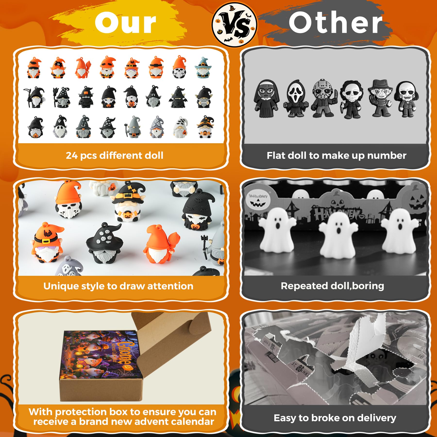 • A treasure hunt for gnome lovers! This Halloween Countdown Calendar is packed with 24 distinct, highly detailed gnome figurines. Discover a spooky new character each day.The thrill of the reveal makes every morning an event. Showcase your complete gnome family as a stunning Halloween decoration and enjoy a collecting adventure that lasts all month long!