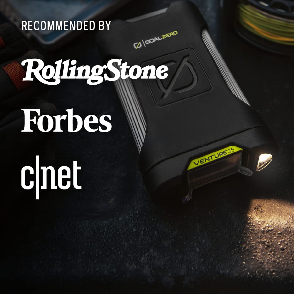 Goal Zero Venture 35 Portable Charger Power Bank 9600mAH 18W USB-C Power Delivery Port 2 USB Outputs IP67 Rating 50 Lumens Flashlight