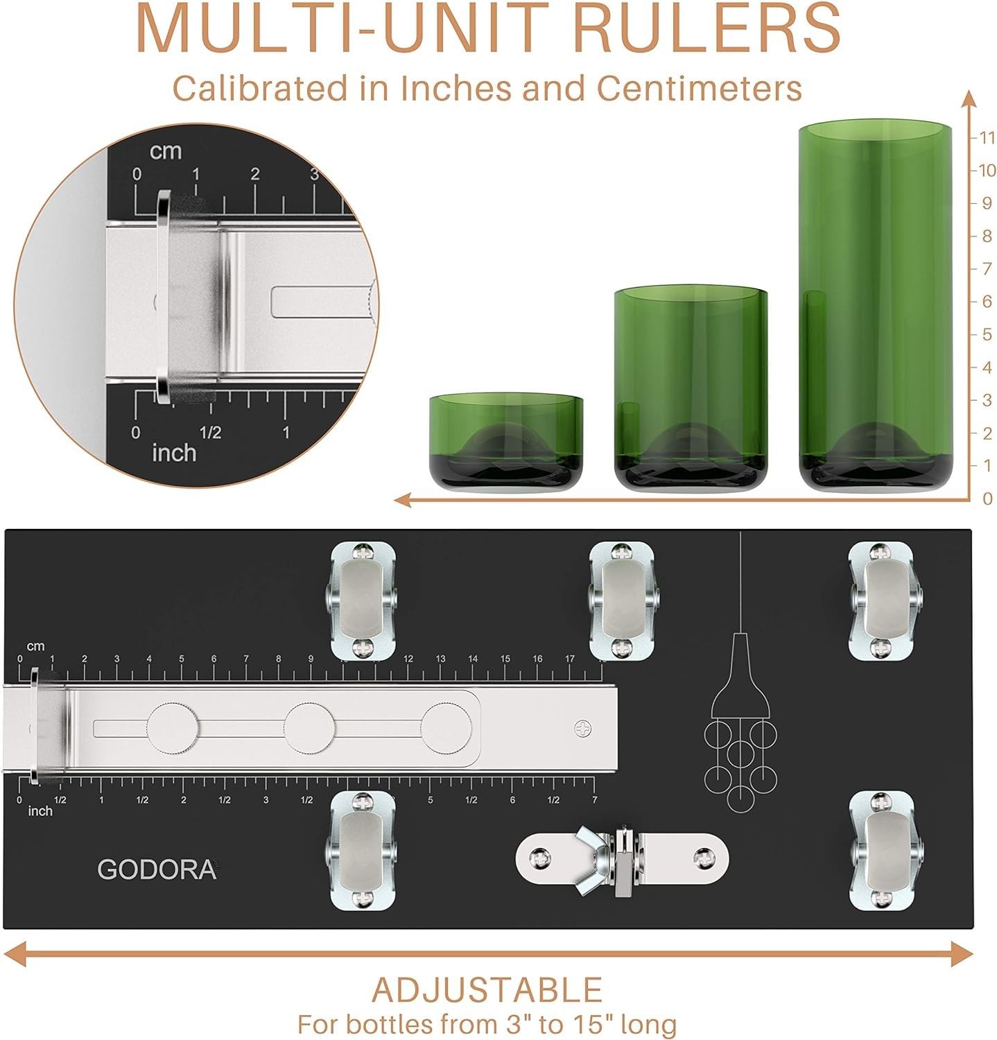 Godora Glass Bottle Cutter, Upgraded Glass Cutter for Bottles & Glass Cutter Bundle - DIY Machine for Cutting Wine, Beer or Soda Round Bottles & Mason Jars, Perfect Score Bottle Cutter