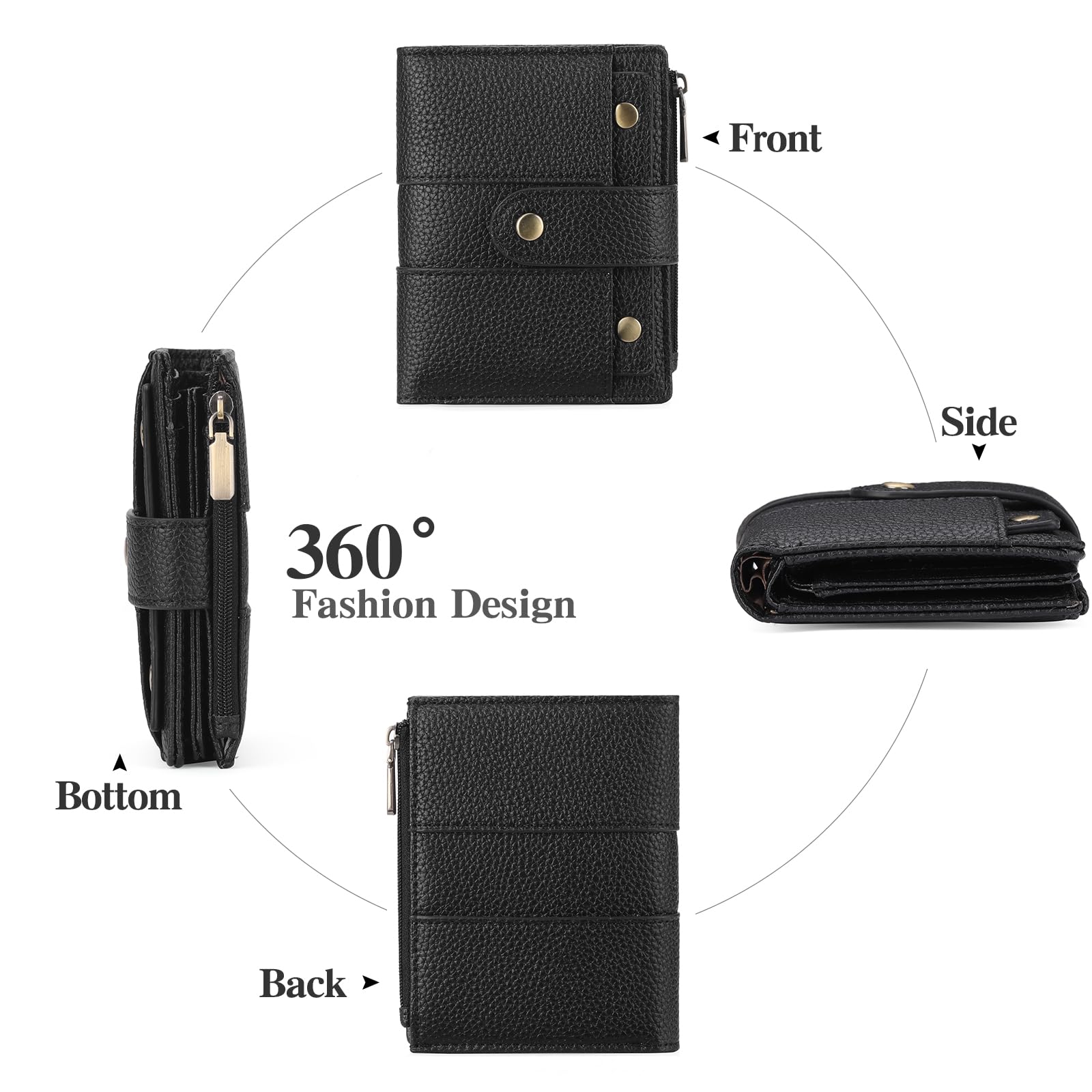 GOIACII Small Women's Wallet Ladies Credit Card Holder with 4 ID Windows & Zip Coin Pocket RFID Blocking Leather