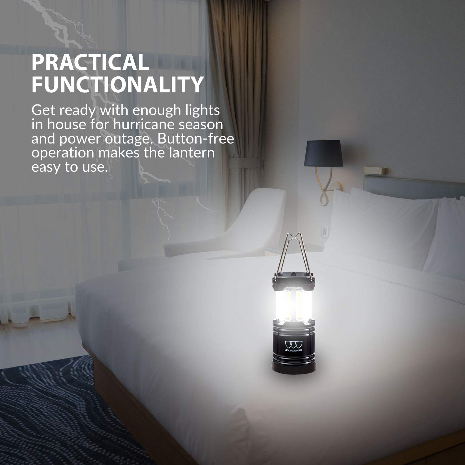 Gold Armour Camping Lantern, Battery Powered LED Lanterns, Survival Kits for Power Outages, Hurricane, Emergency, Portable Camping Essentials (4Pack Black)
