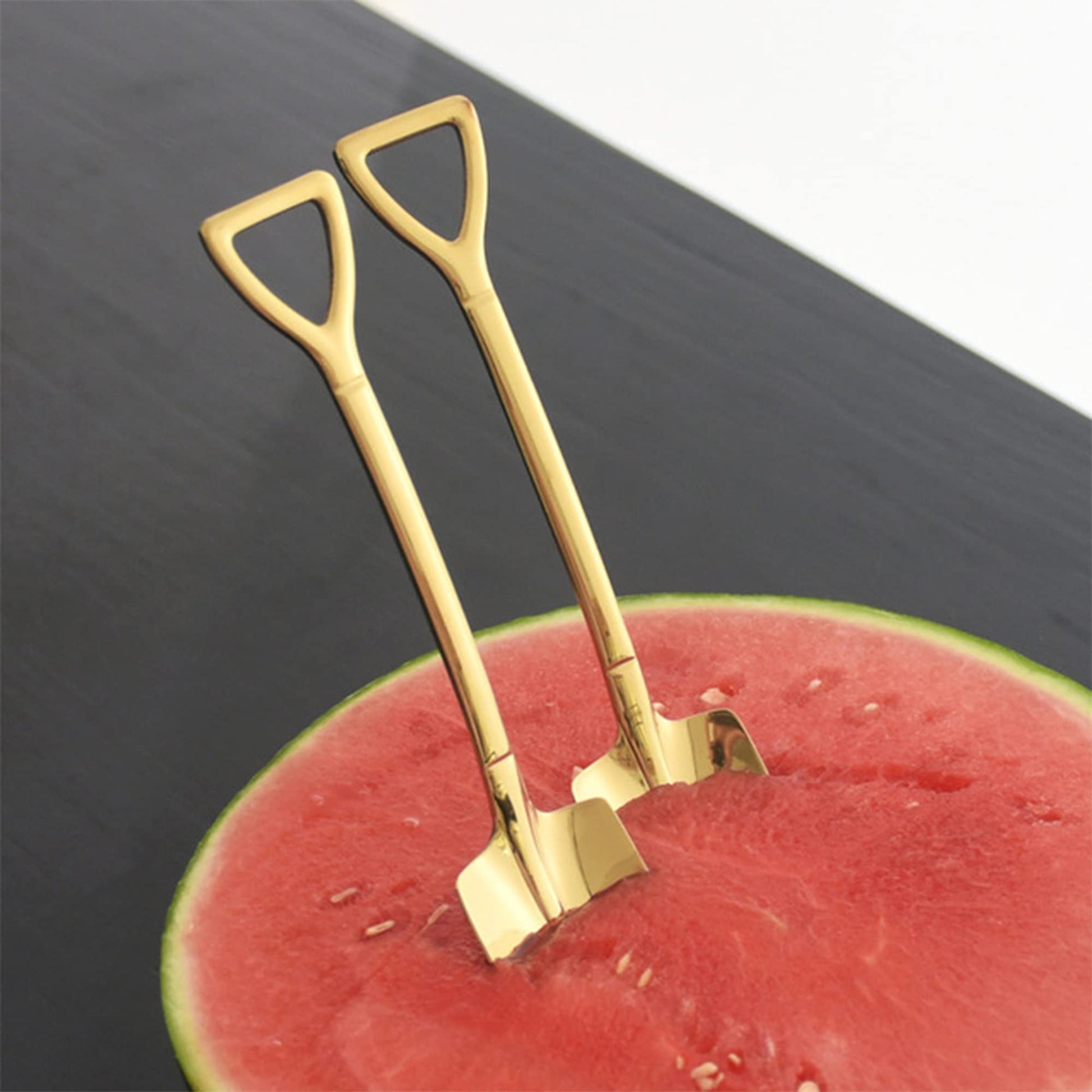 • Smooth Edges: gold shovels The stainless steel teaspoon has smooth, rounded edges to protect fingers and mouth from cuts. Easy to match with different kinds of cutlery or silverware