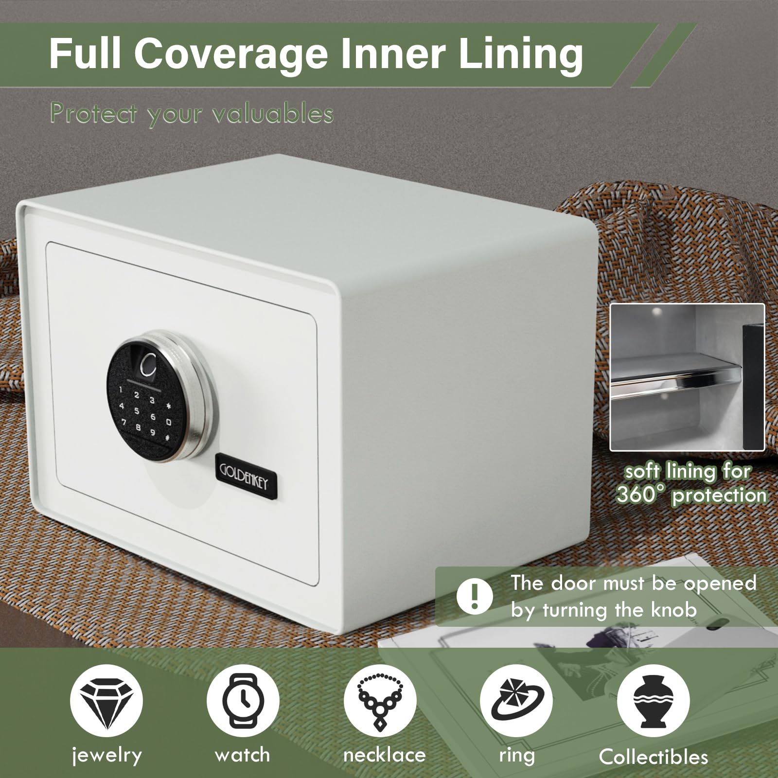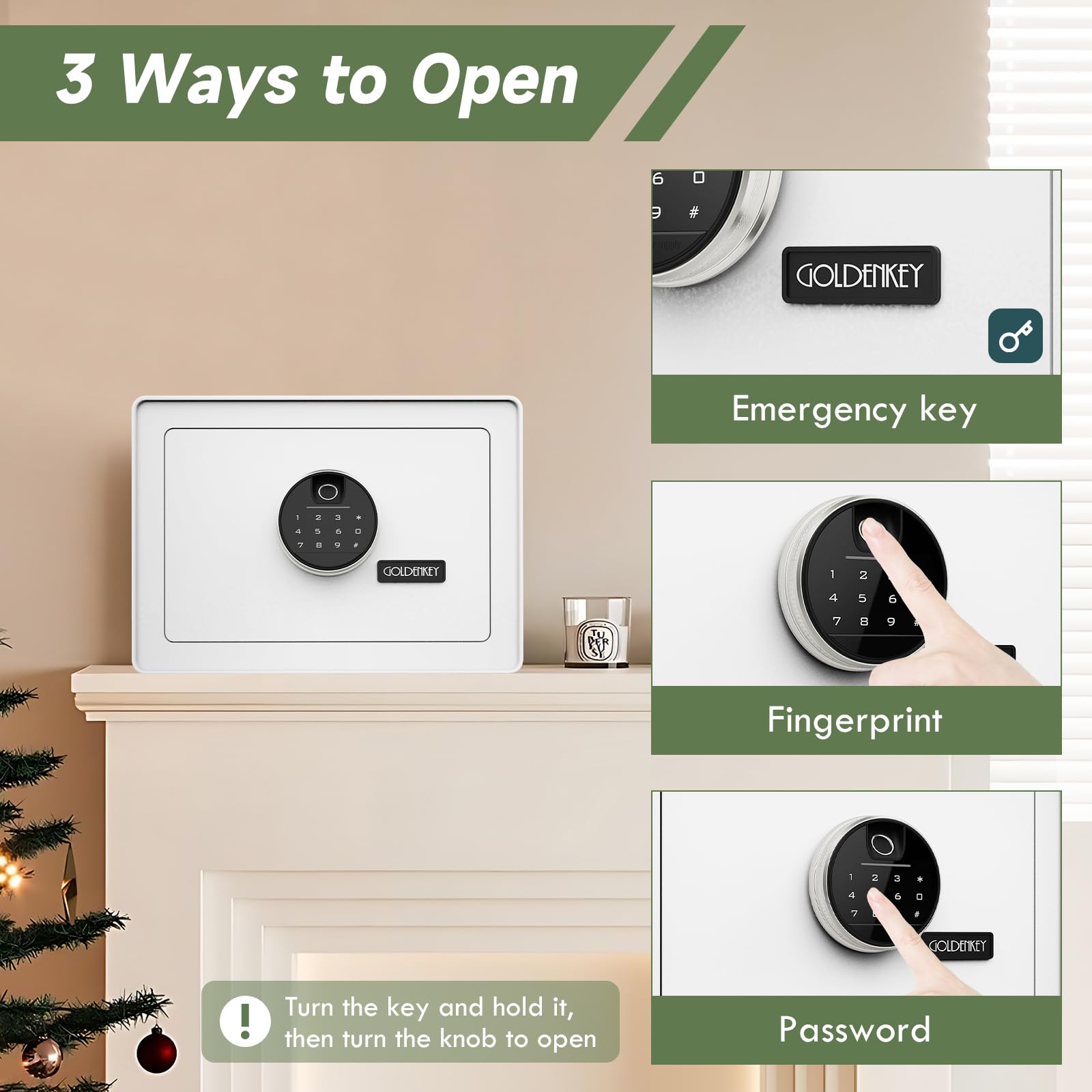 Goldenkey Luxury Jewelry Safe with Fingerprint&Keypad Lock, Document Safe Box with Soft Velvet Lining, Removable Shelf, High Security for Home Office, Hotel, 1.2 Cu.Ft.