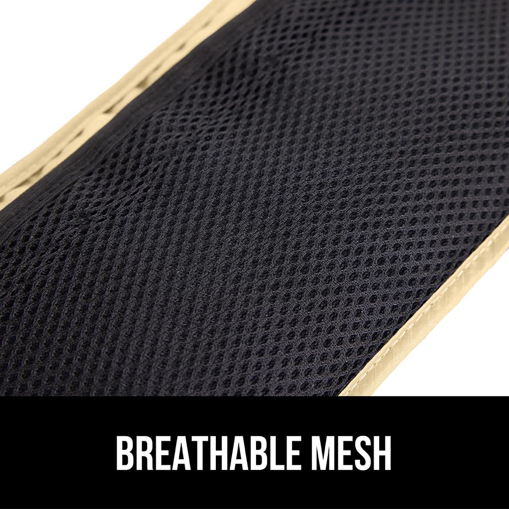 • BREATHABLE PADDED MESH BACKING: back panel features padded, moisture wicking mesh that adds an extra layer of comfort and ventilation during extended wear; adjustable, elastic waistband fits up to 48 inch waist​