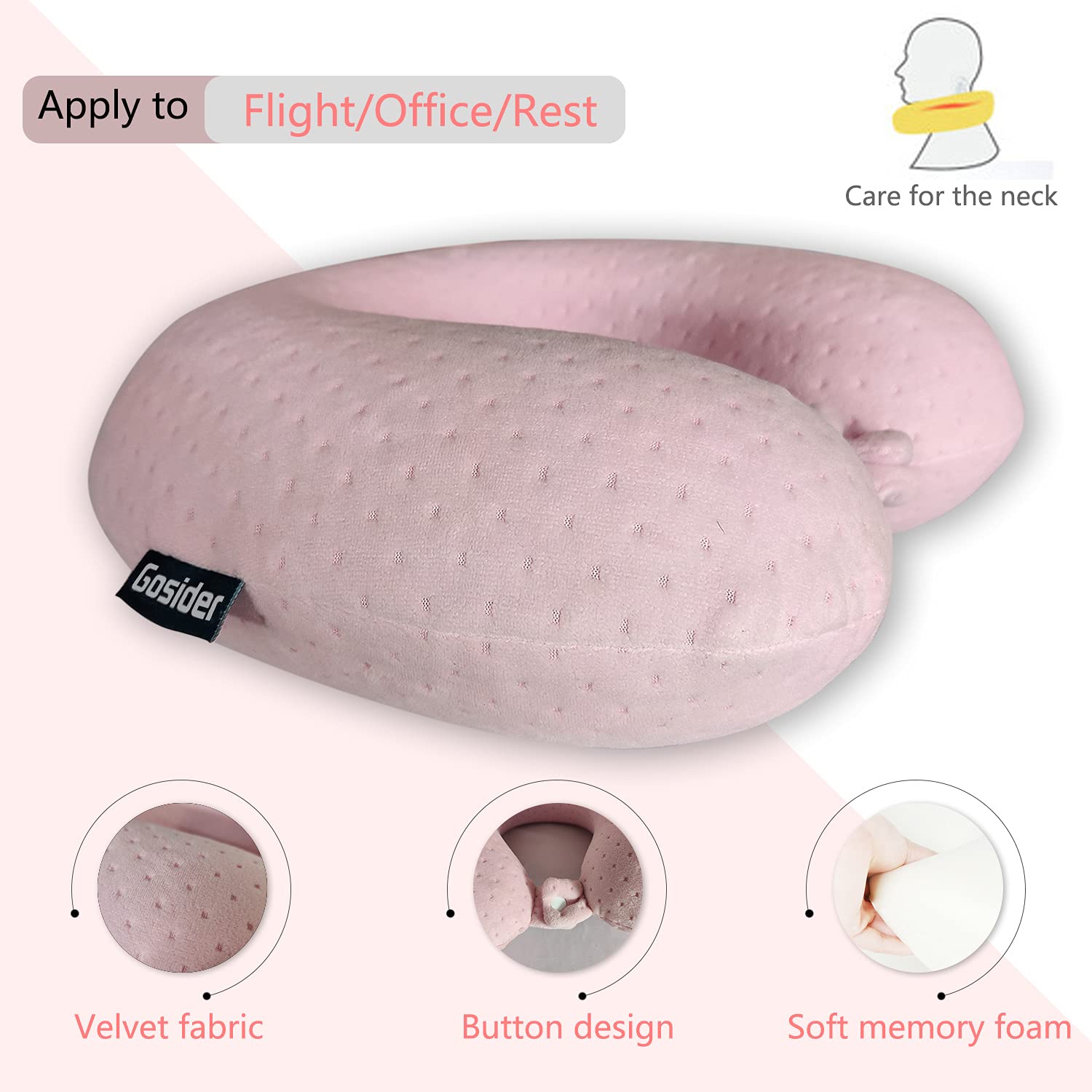 Gosider Neck Pillows for Sleeping Travel Pink Travel Pillow Comfortable U Shape Memory Foam Pillows Neck and Head Support Portable Travel Neck Pillow Suitable for Planes, Trains, Self-Driving Cars