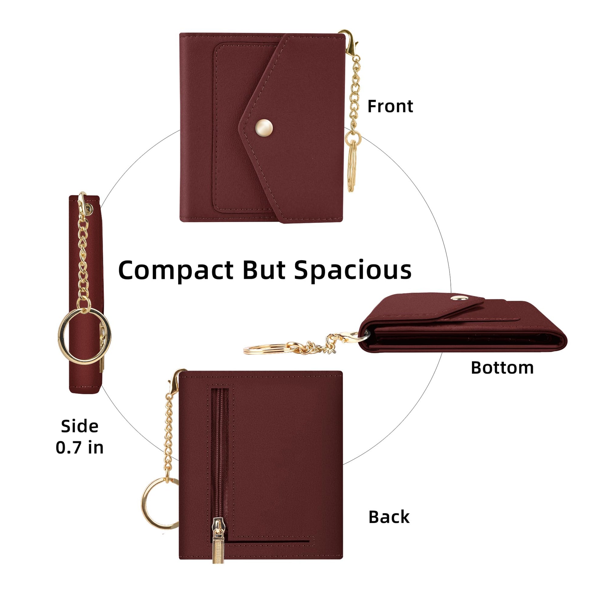 • Keychain Wallet: This keychain wallet for women features a built-in keychain, perfect for attaching to your keys and other small items; additionally, it features a zippered coin pocket to keep your change organized