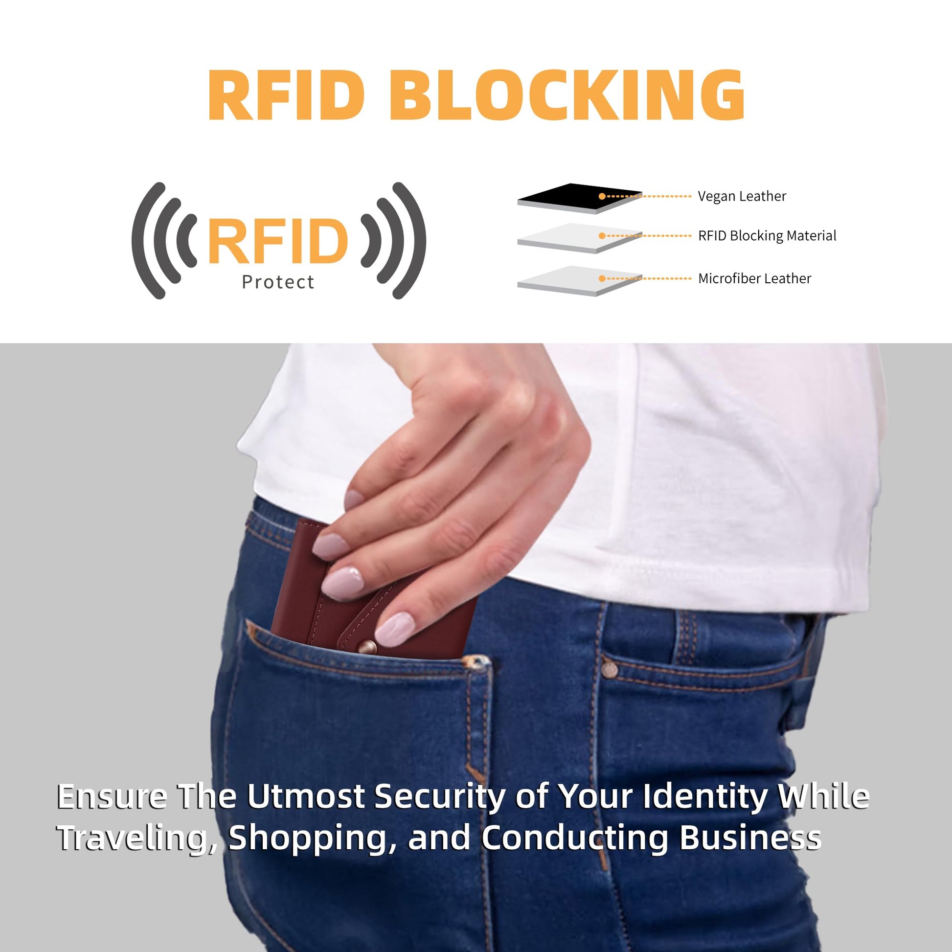 • RFID Blocking: Equipped with military-grade RFID blocking materials, this RFID wallet for women can protect your vital information and keep it safe from theft by digital thieves