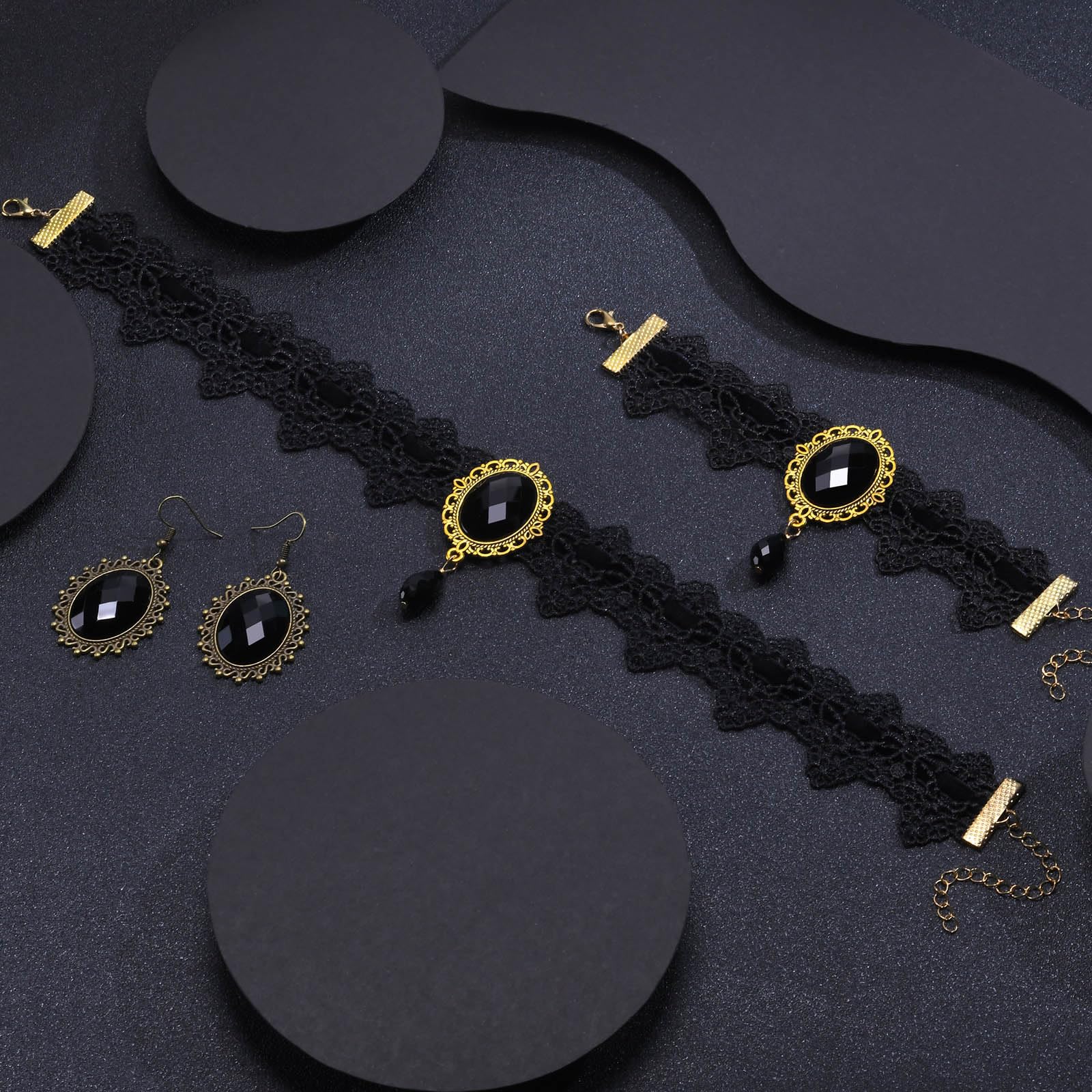 • 🖤【Halloween Jewelry Accessories】🖤This fashionable gothic choker necklaces jewelry set includes a gothic choker necklace, a pair of Halloween earrings and a bracelet. Capture attention with this goth choker necklace and Halloween earrings bracelet set for women. Halloween costume accessories are perfect for Costume play, Masquerade, Witch, Vampire, Victorian, Steampunk, Lolita, Renaissance and Cosplay Costume accessories.