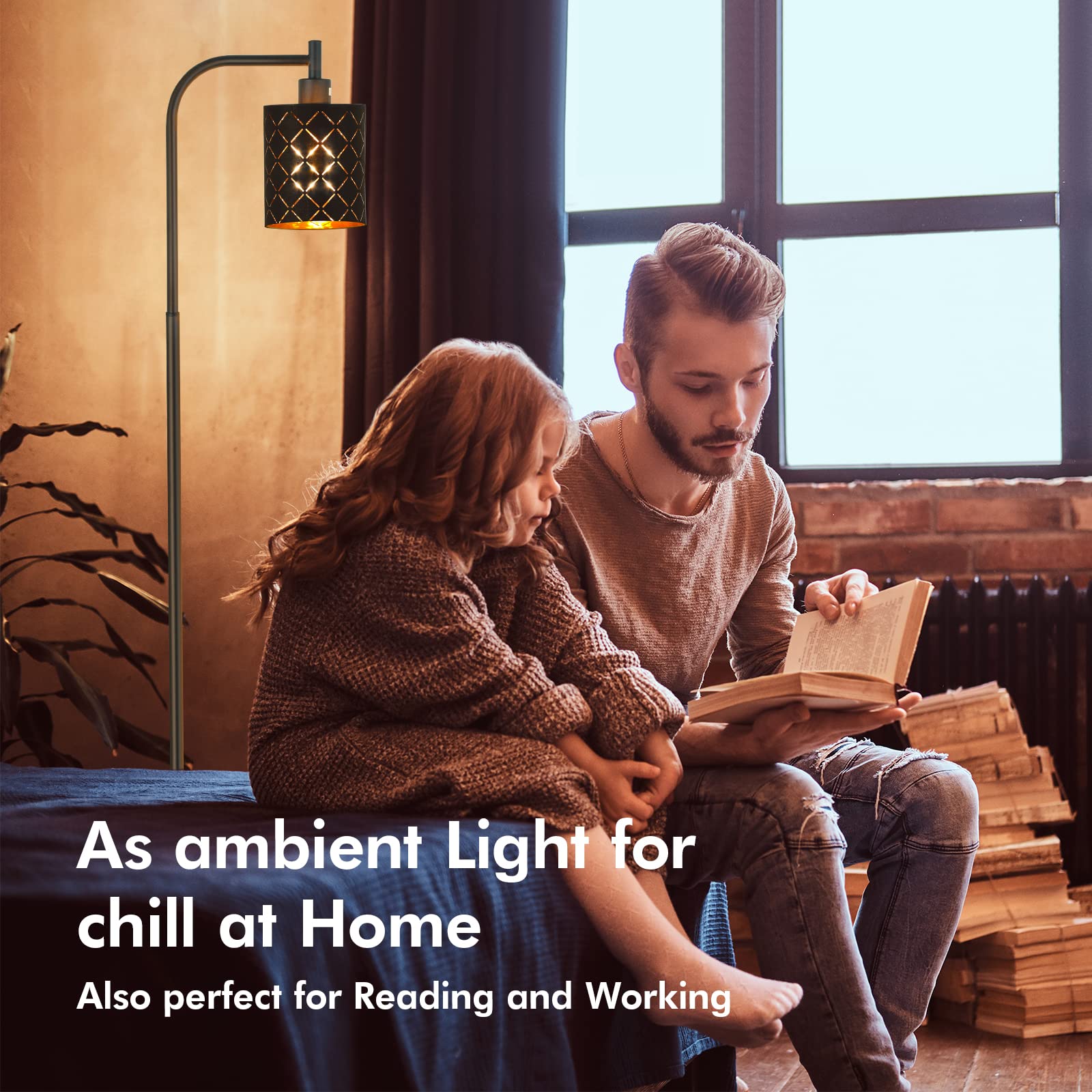 • Soft, Warm Lighting: Equipped with a 6W LED bulb, this floor lamp emits a soft 2700K warm white light that’s gentle on the eyes, making it ideal for reading, relaxing, or creating an intimate atmosphere. The golden lining inside the lampshade enhances the warm glow, adding a luxurious touch to your space.