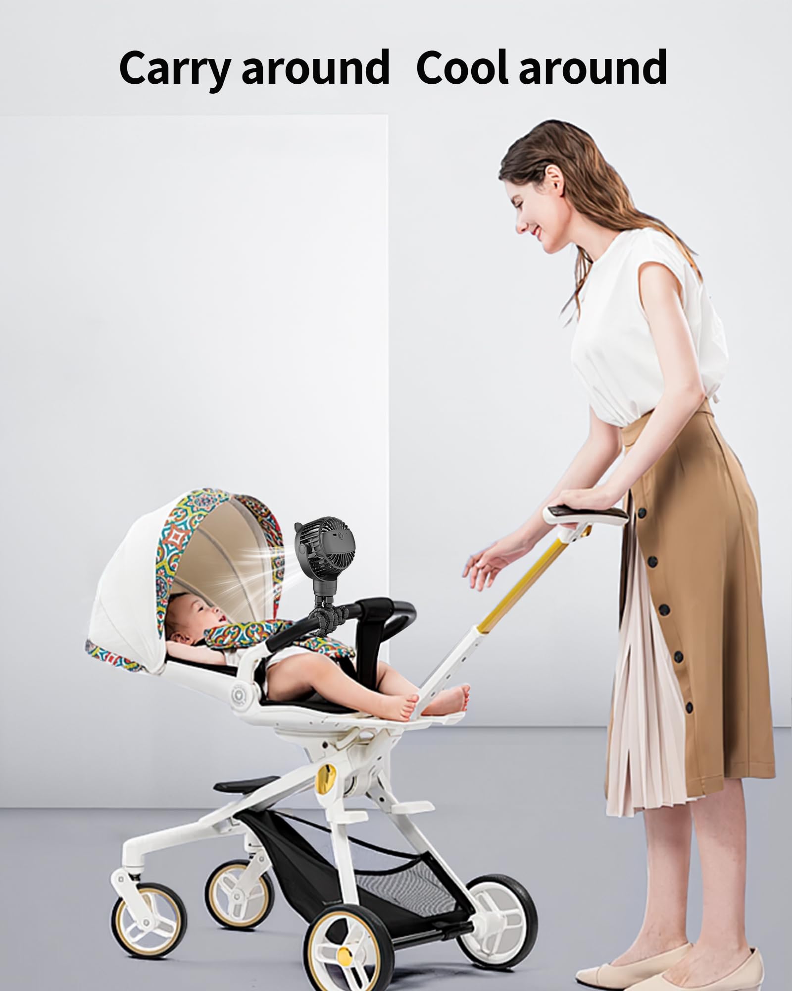 GOTOTO Baby Stroller Fan, Rechargeable Portable Fan with 2000 mAh Battery Operated,3 Wind Speed,360-Degree Rotation,Ultra-Low Noise Level,Safe mini fan for your baby