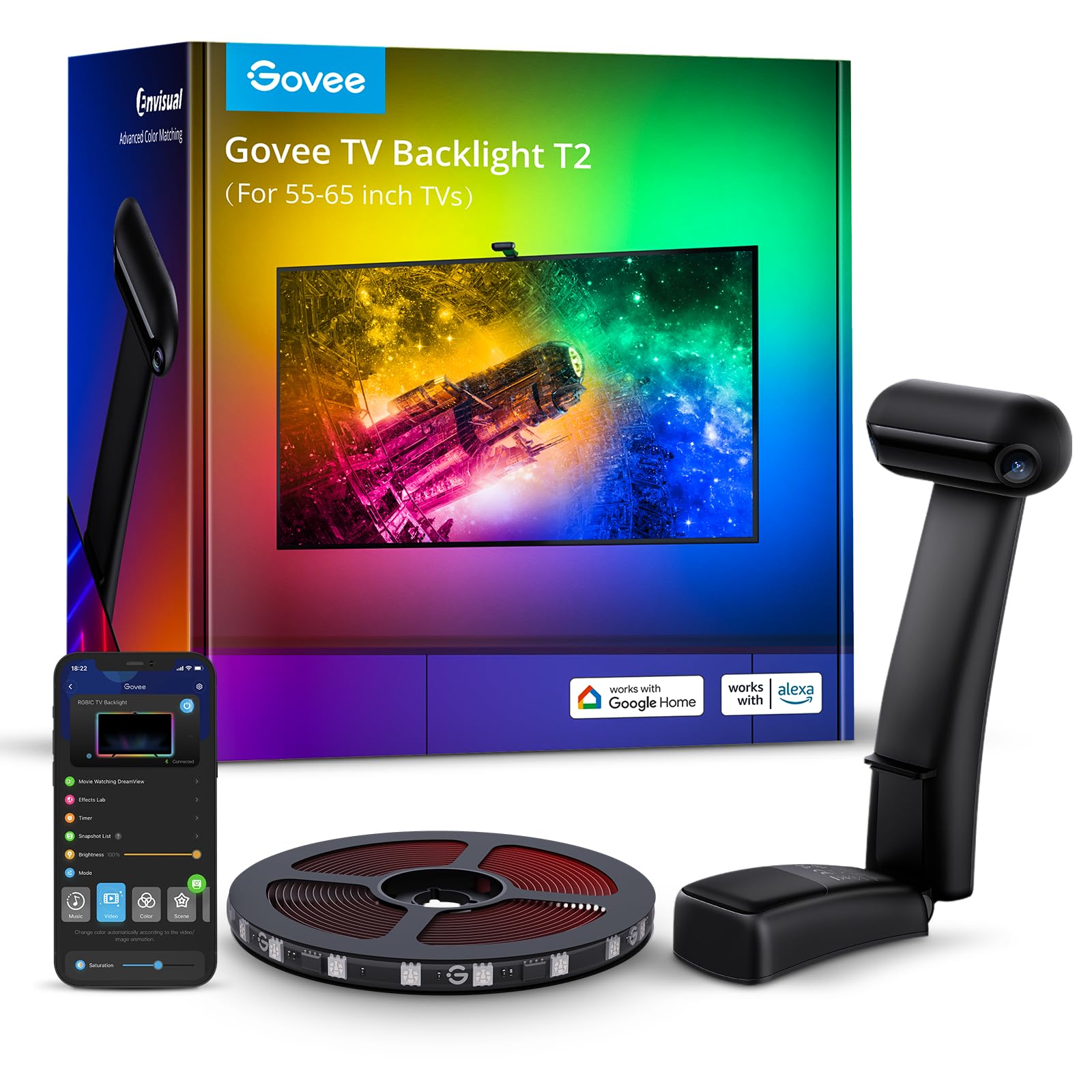 Govee Envisual TV LED Backlight T2 with Dual Cameras, 11.8ft RGBIC Wi-Fi LED Strip Lights for 55-65 inch TVs, Double Strip Light Beads, for Home Decorations, Smart App Control, Music Sync