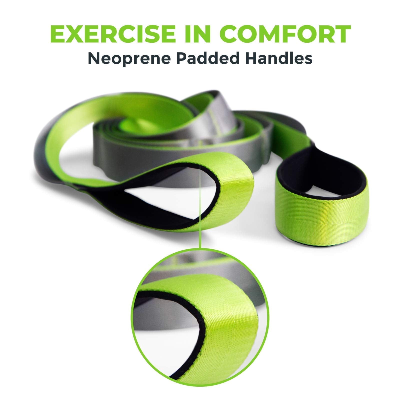 Gradient Fitness Stretching Strap for Physical Therapy, 12 Multi-Loop Stretch Strap 1.5" W x 8' L, Neoprene Handles, Physical Therapy Equipment, Yoga Straps for Stretching, Leg Stretcher, (Green/Grey)