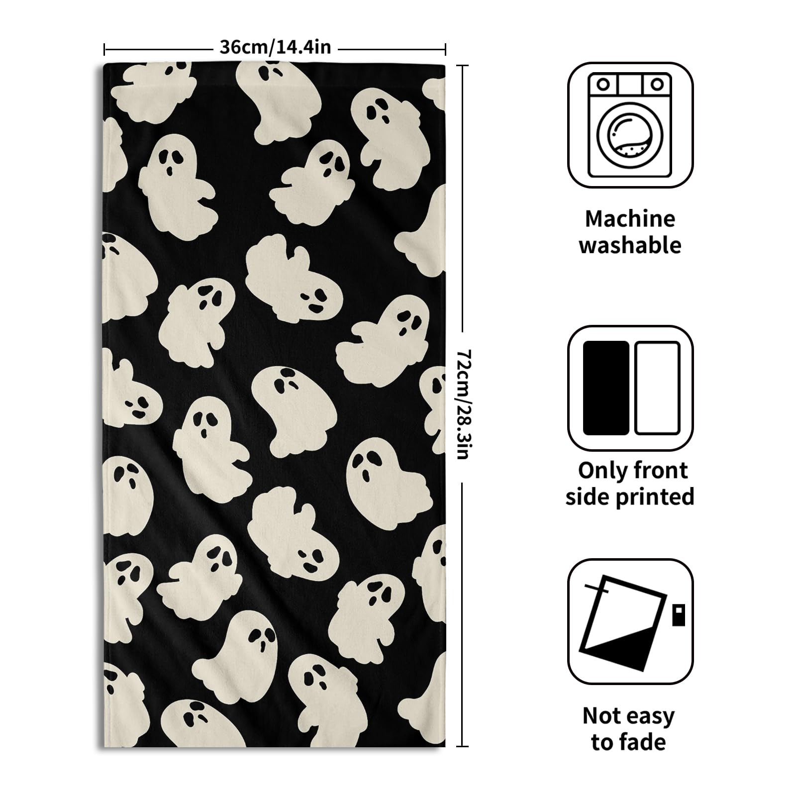 • Multipurpose and Durable: Designed for more than just the kitchen, these Halloween white ghost decorative towels are perfect for use in the bathroom, gym, spa, or as a face towel. The durable construction ensures they withstand frequent use and washing, maintaining their softness and beauty over time.