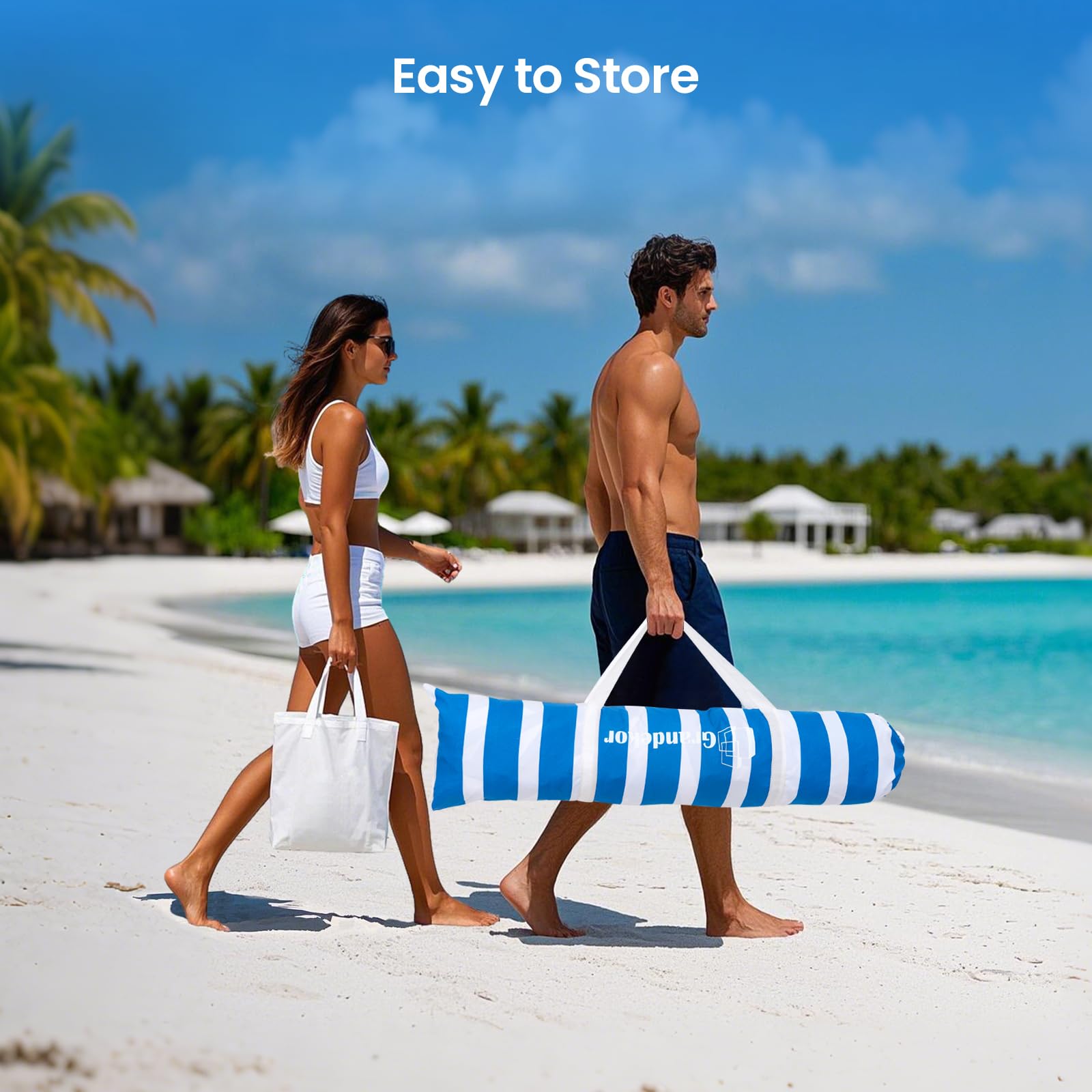 Grandekor Upgraded 6'×6' Pop Up Beach Canopy Tent for Family & Kids UPF 50+ Sun Shelter for Pool Camping with Sand Anchor Sidewall Bold Blue White Stripe