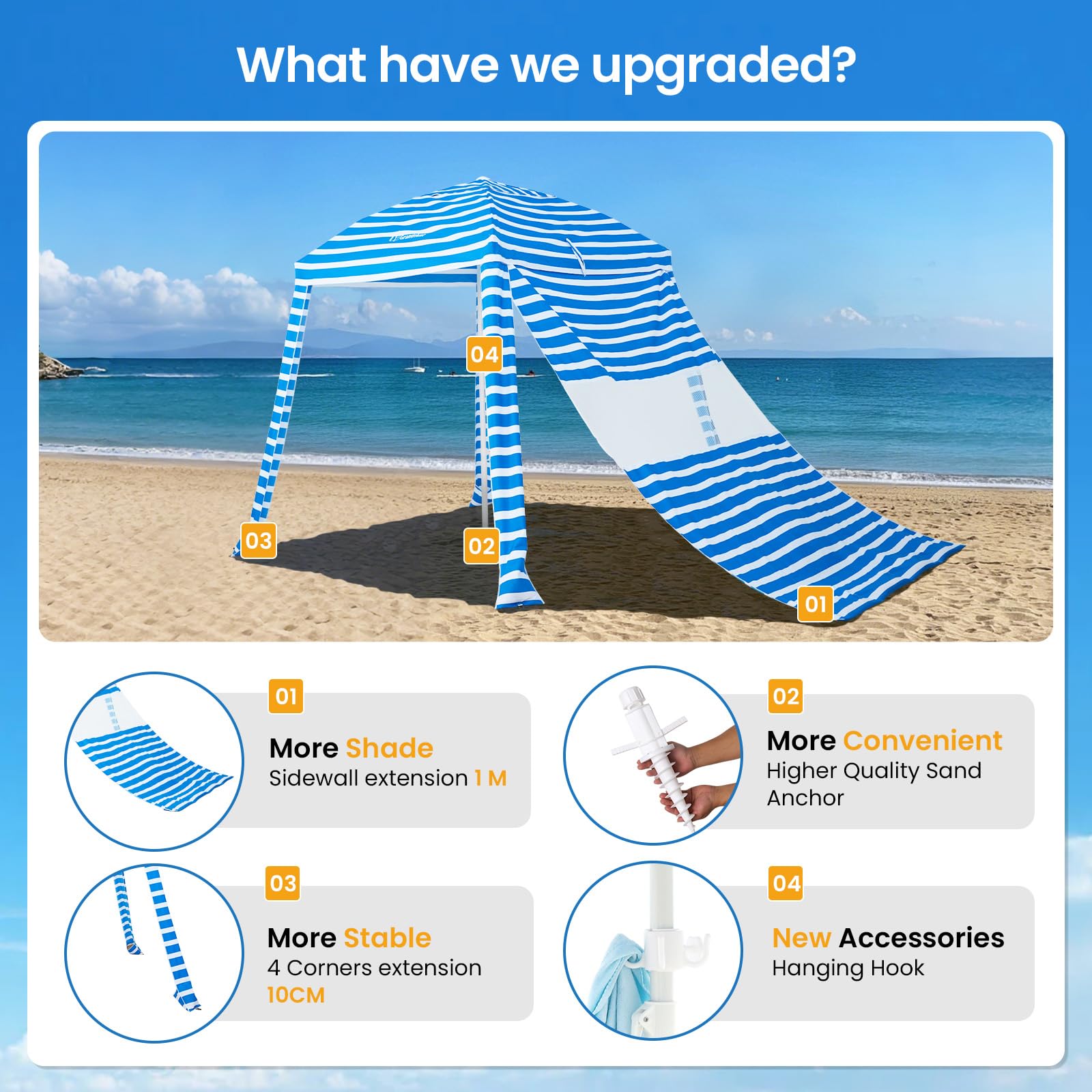 • Beach Canopy New Upgrade: Beach canopy is equipped with removable side walls. Flexible expansion of beach sun shade area according to your needs, effective UV protection, UPF 50+.