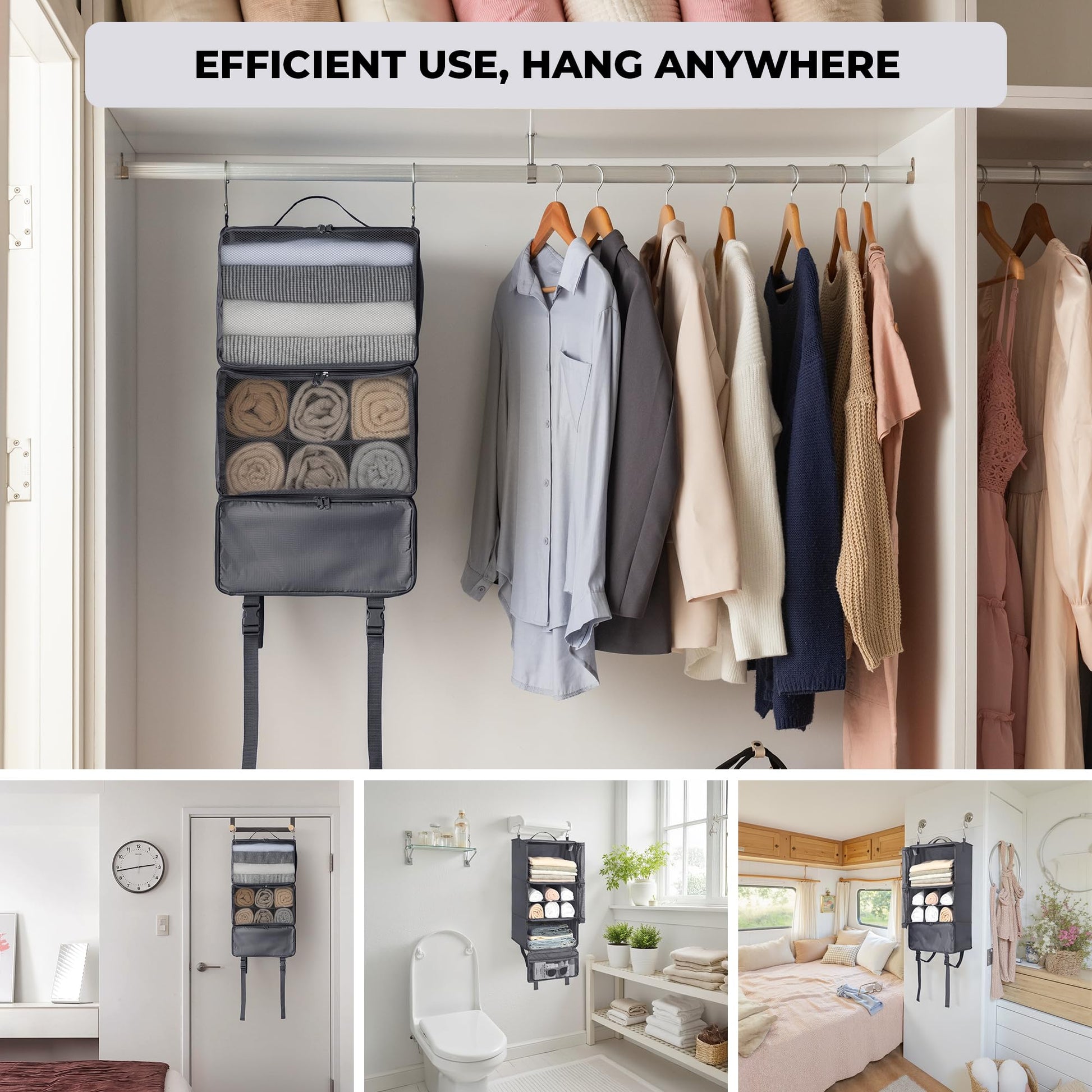 GRANNY SAYS Compression Packing Cubes for Travel, Extra Large Hanging Luggage Organizer, 3-Shelf Foldable Hanging Travel Shelves with 2 Hooks and Window, Packing Cubes for Carry on Suitcase Organizer