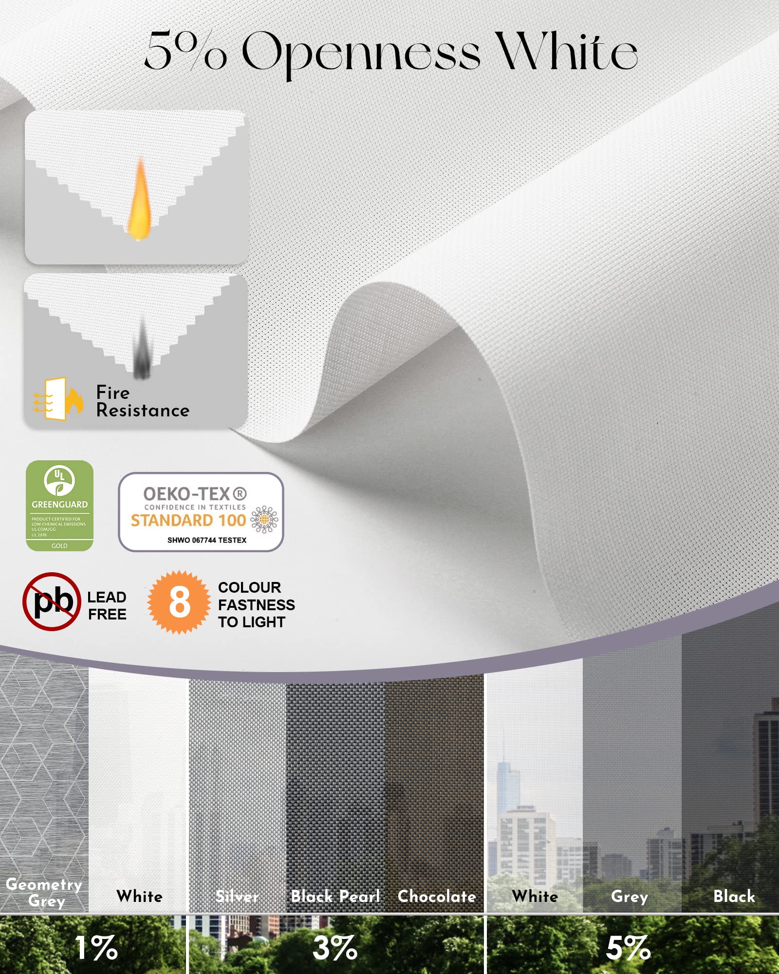 • Functional shades: 5% openness, 95% uv protection while still keep exterior visibility, fireproof, waterproof and dusty-free. Filter light and reduce heat, also create air circulation, ideal indoor window treatments for living room, patio sliding door, office etc. Cordless style, safe for children and pets. Rohs certificated, environmental friendly. Valance and designed bottom bar for customized option.