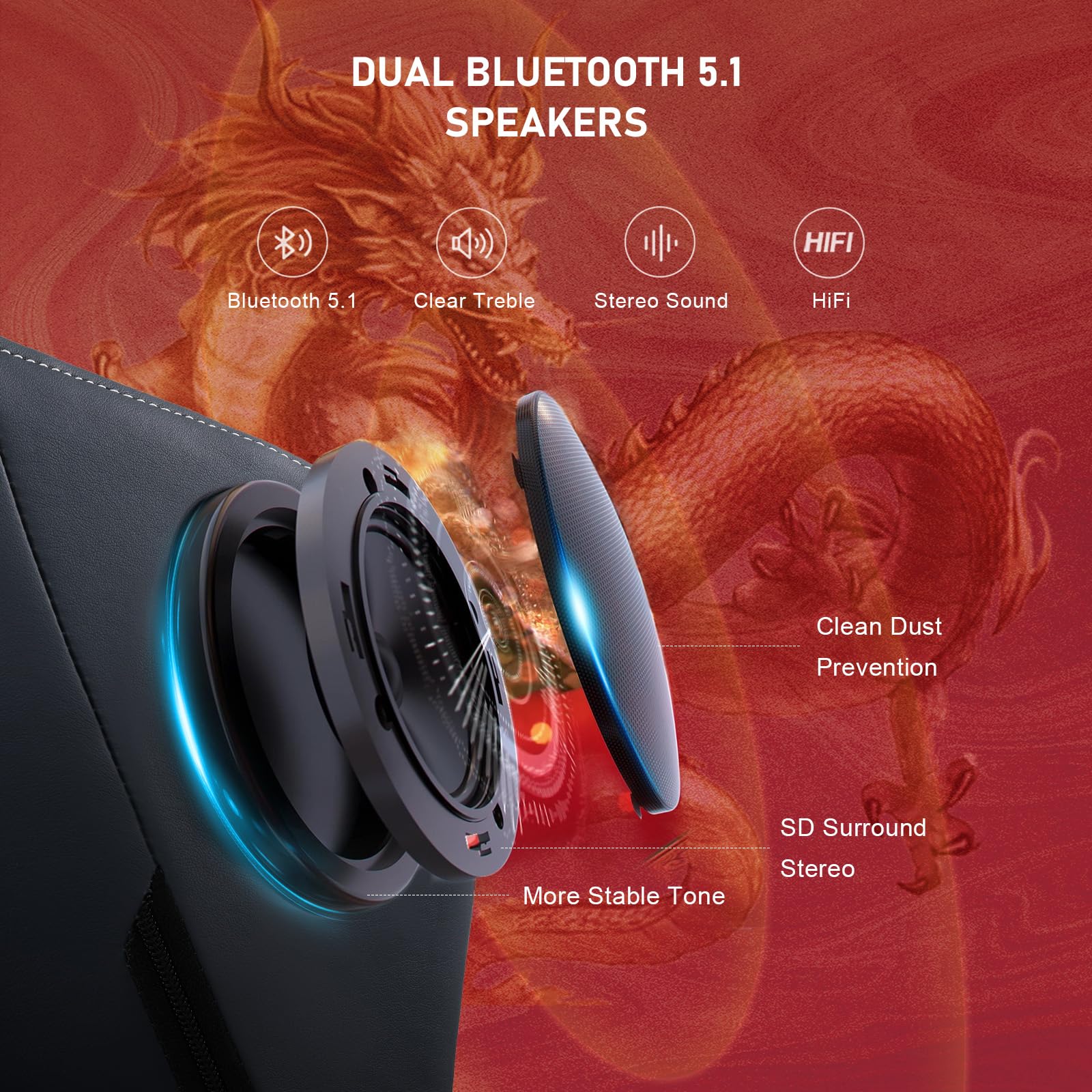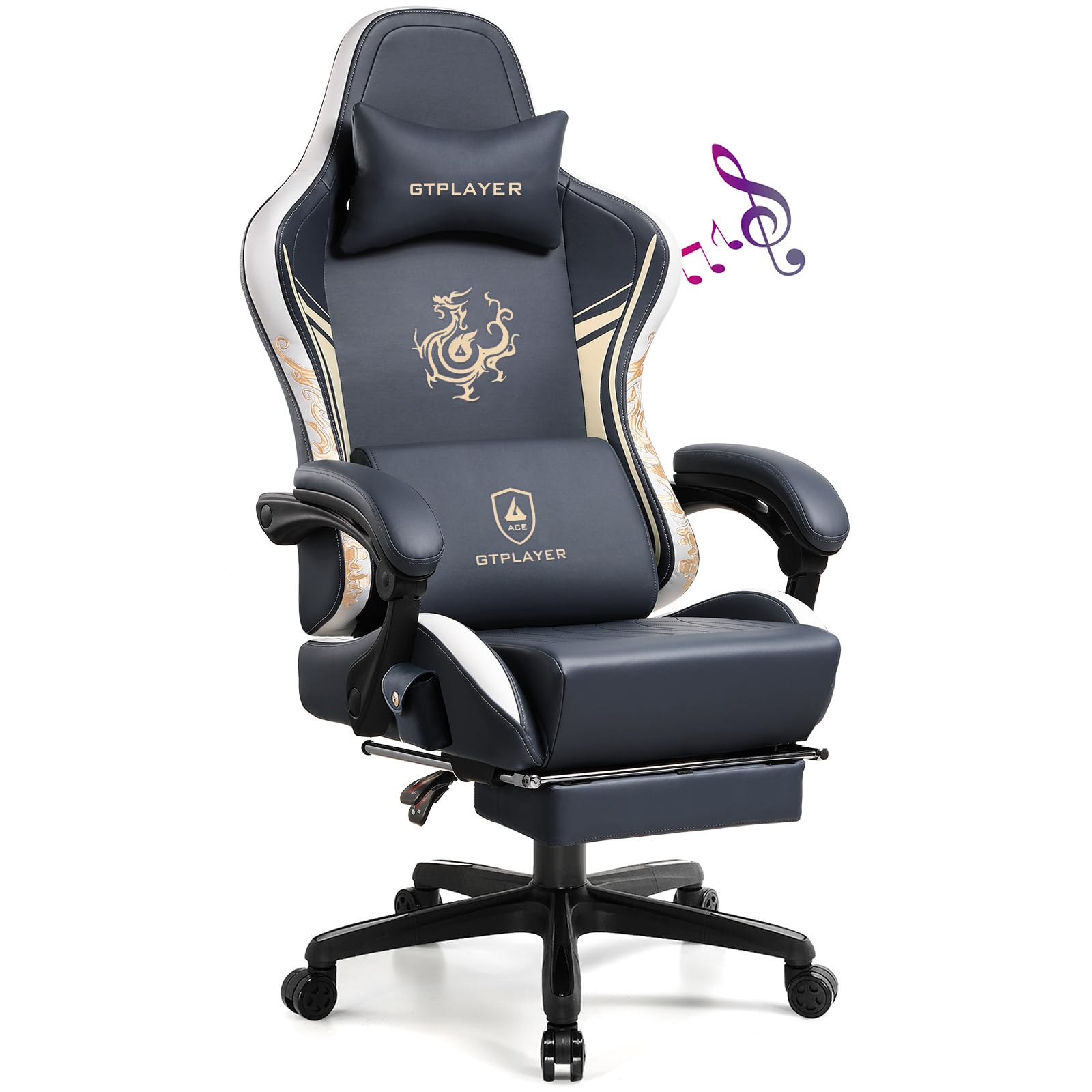GTPLAYER Gaming Chair with Bluetooth Speakers and Footrest, Dragon Series Video Game Chair, Heavy Duty, Ergonomic, Esports Computer Office Chair,(BLUEGRAY)
