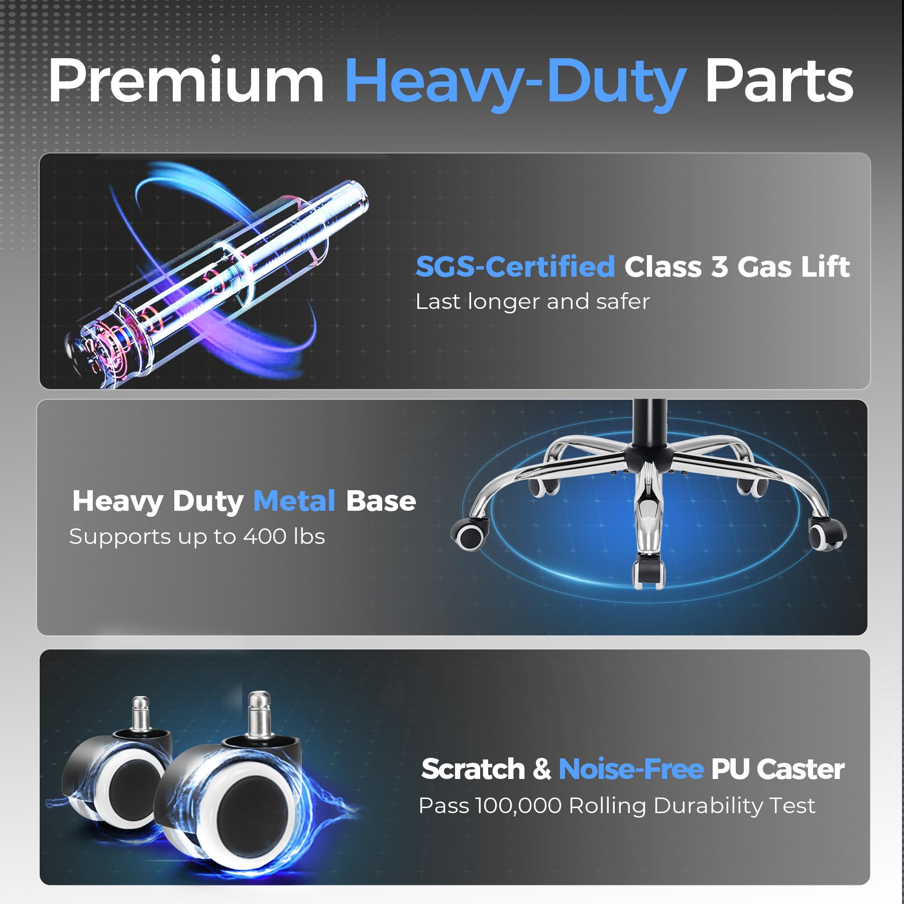 • 【400LBS Big and Tall Office Chair】Designed specifically for heavy people, Thicken and enlarged size headrest greatly improves the contact area perfectly supporting your head and neck.The prominent sides of the backrest wrap around your back better to support it on both sides and reduce pains and pressure. 400lbs weight capacity fit people with different height and body type. Even if you are big and tall, you also can get a comfortable sitting experience