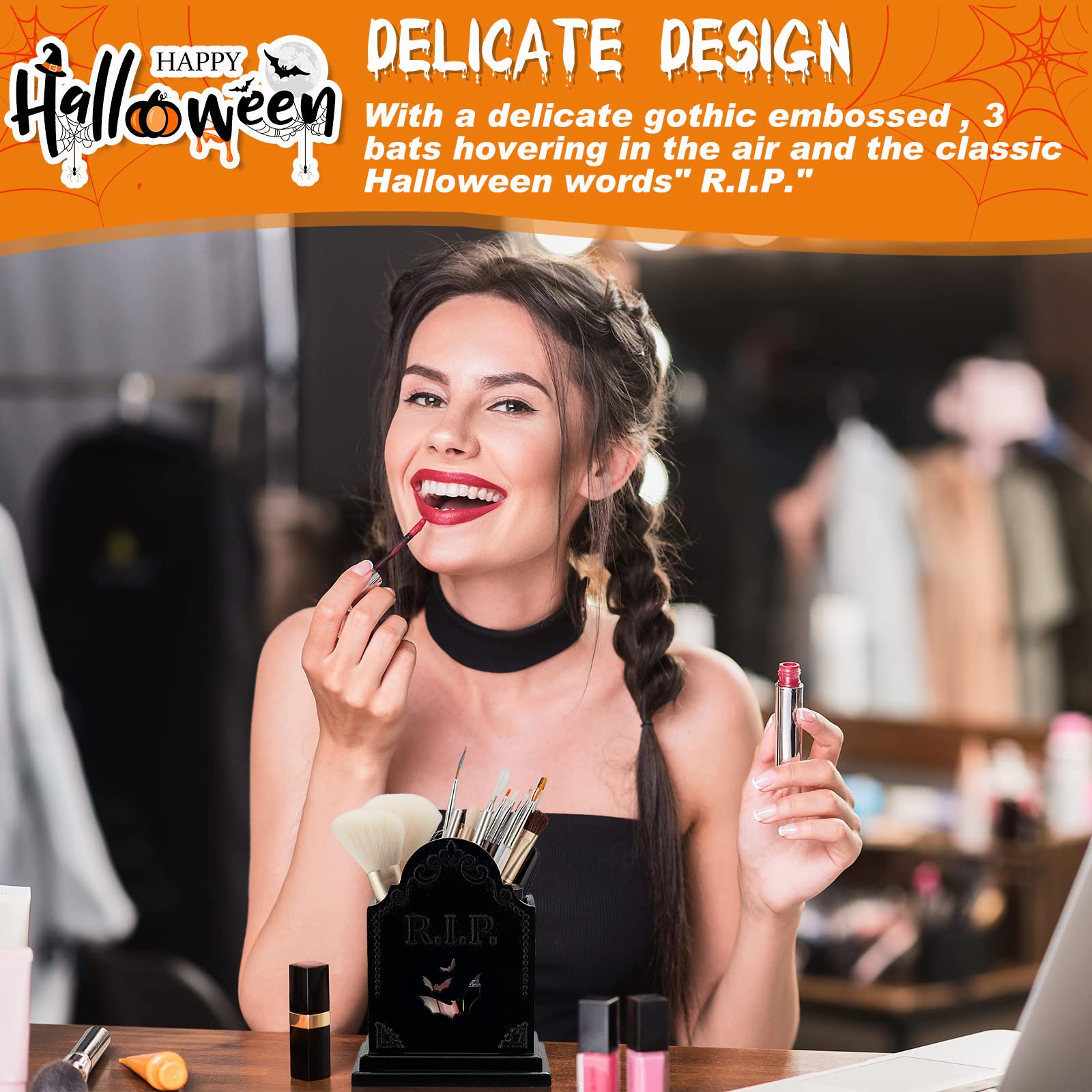 Gueevin Tombstone Gothic Pen Holder Coffin Makeup Brush Holder Utensil Goth Toothbrush Spooky Bathroom Decor Office Pencil Organizer for Desk Christmas Decor Goth Gifts Vanity Accessories