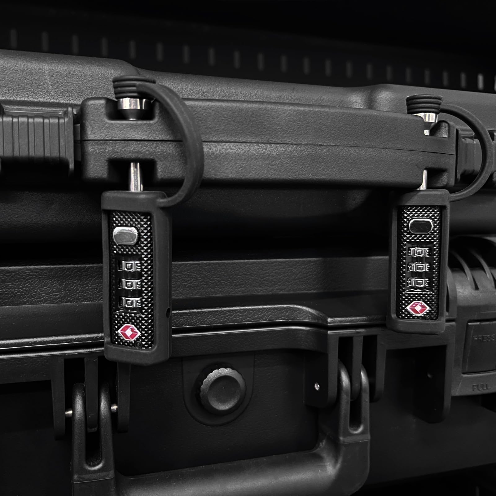 • 2.The tsa approved rifle cases travel locks (KEY NOT INCLUDED) for gun case has the Red Diamond logo and is TSA compliant, so security personnel have an official master key to open your suitcase for security screening and re-locking without damaging the large combination gun lock. The shotgun case lock is a waterproof airline approved locking gun case padlock, with weatherproof features, protecting your firearms from moisture, dust, and other environmental elements.
