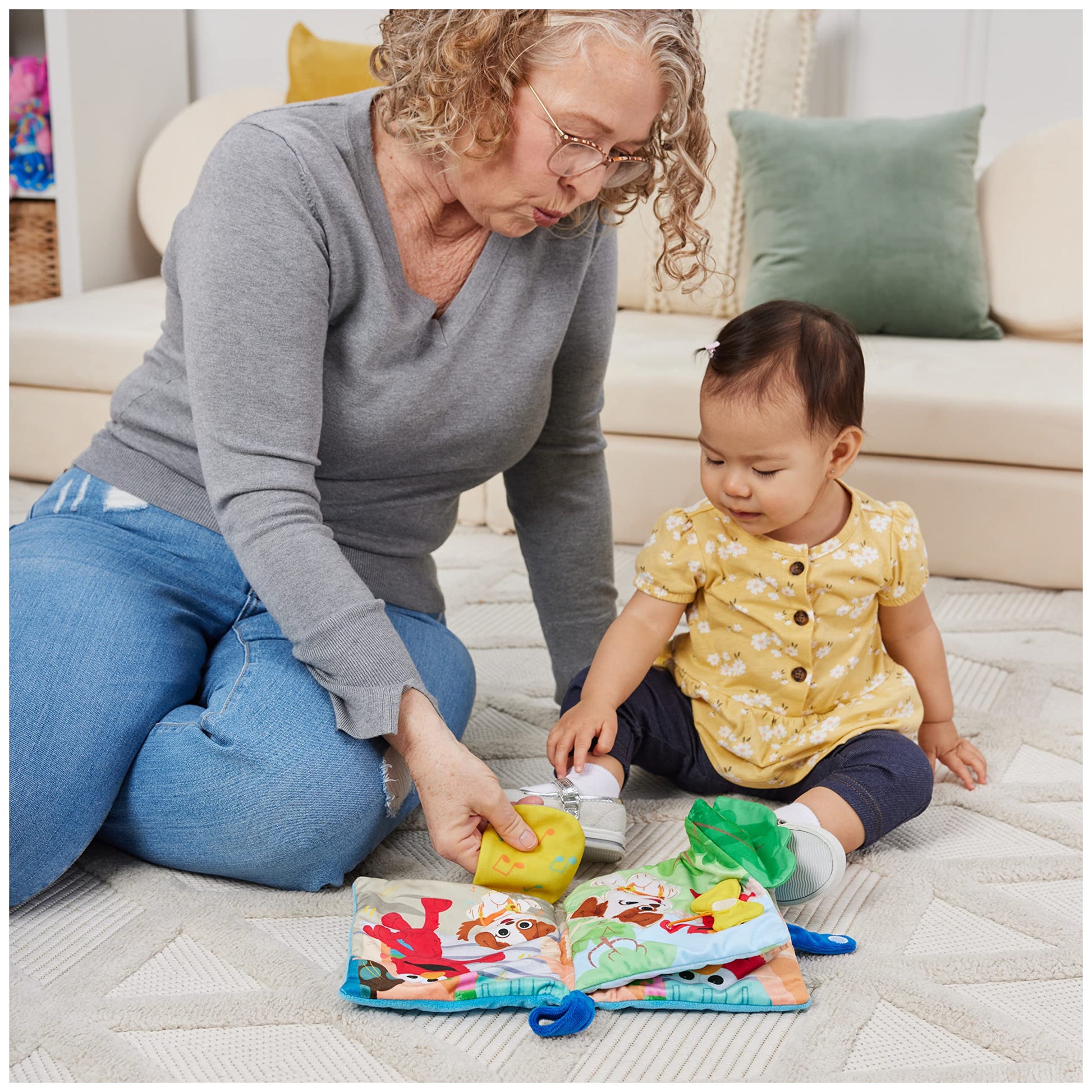 Details: Elmo has a new adorable furry friend – Tango! Tango is a fluffy, music-loving pooch with large, expressive embroidered eyes, short, floppy ears, and a signature yellow-and-orange felt music note collar. As part of the Furry Friends Forever collection, this soft, adorable plush book shows off their amazing friendship while providing exciting interactive surprises for baby as the story unfolds. Turn the soft plush pages for sensory-stimulating features including squeakers, crinkle and rattle sounds, and a tethered bone to keep playtime fun. This Sesame Street Furry Friends Forever soft book is surface washable for easy cleaning and appropriate for ages one and up.