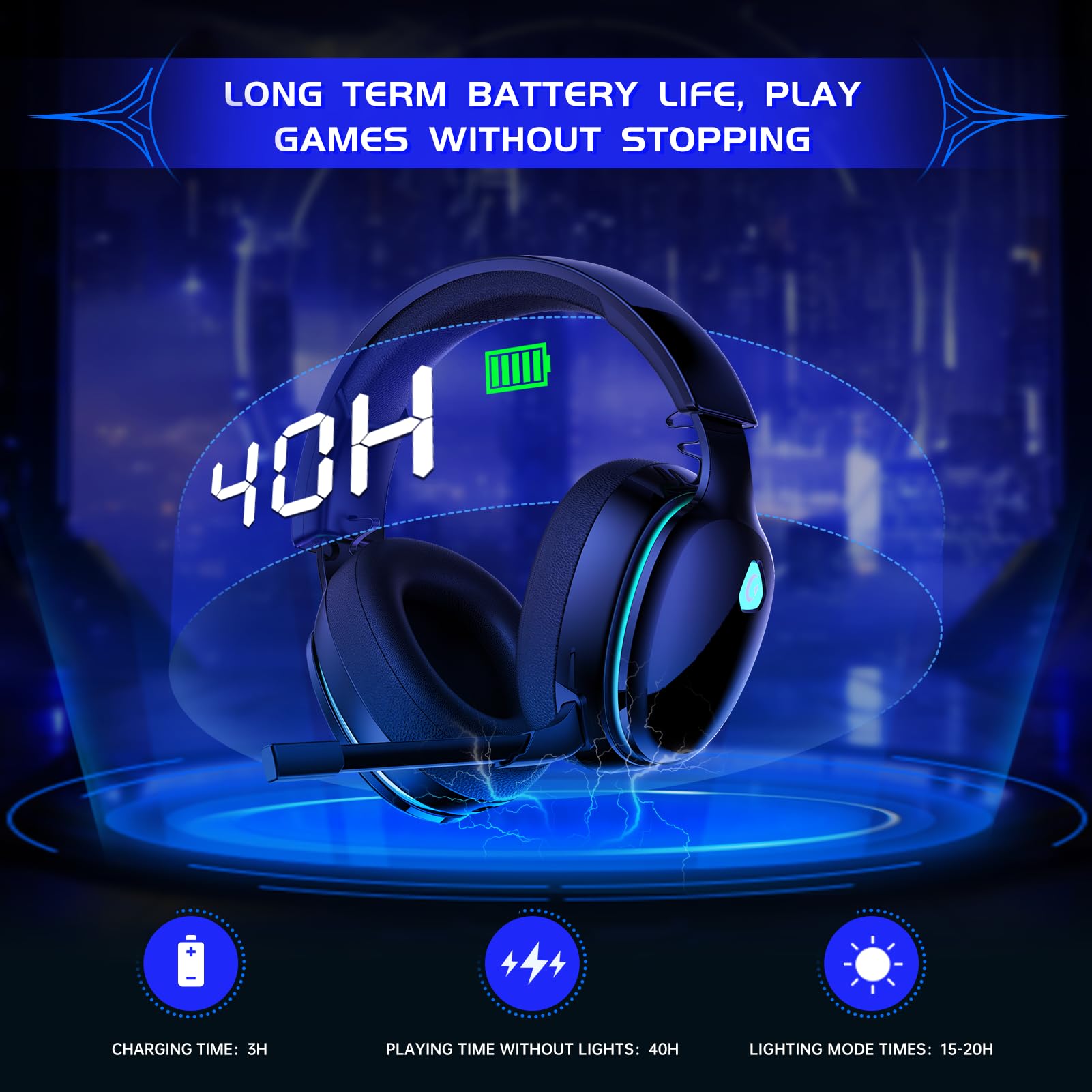 • 🎧Extended Battery Life & Ergonomic Design : This wireless headset for switch features an ergonomic design with adjustable padded headbands, the soft and breathable memory-protein earmuffs cover your ears completely, effectively isolating external noises. With a remarkable long battery life of 40hrs, this wireless gaming headphones keep you immersed in your games. Additionally, when the cool blue lighting effect is enabled, you can enjoy 15-20hrs of gameplay. It takes only 3 hours for a full recharge.
