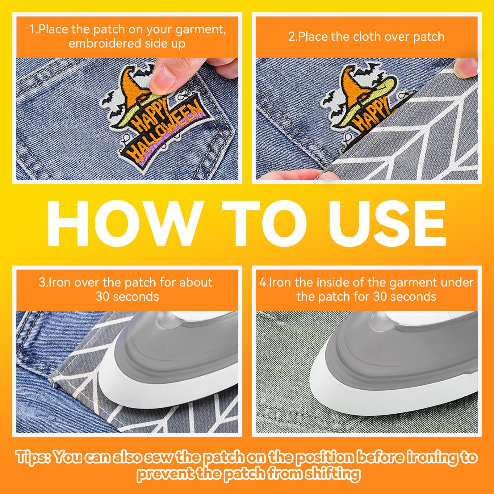 • Cute & Fun Halloween Iron on Patches: Add a touch of frightful fun to your costumes with our Halloween iron on patches! Featuring classic designs like pumpkins, ghosts, spider webs, and skulls, these patches are perfect for DIY costumes, jackets, bags, and hats. Easy to apply with an iron—no sewing required!