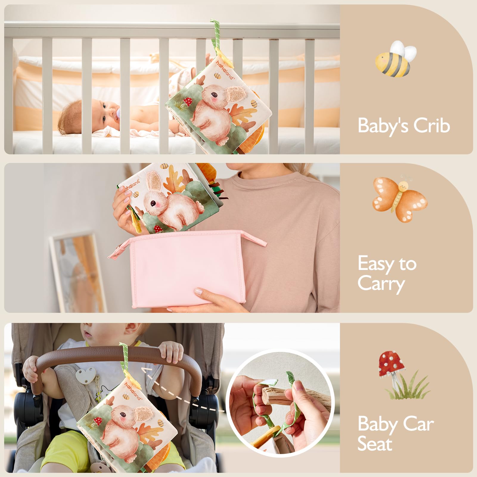 hahaland Baby Books 0-6 Months, Tummy Time Sensory Baby Toys 6 to 12 Months Touch Feel Book Textured Crinkle Books Baby Shower Birthday Gifts for Boys Girl 0 3 6 9 12 Months Baby Travel Toys