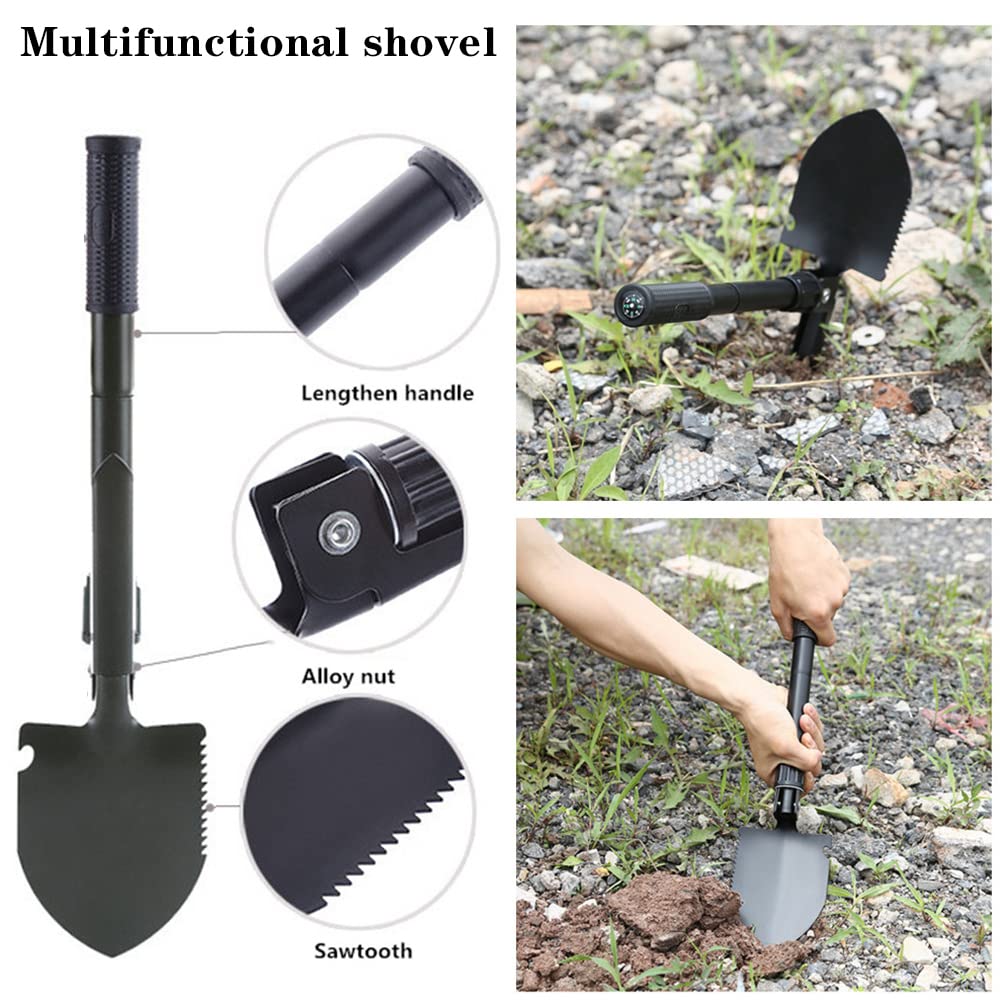 • 【Multifunctional shovel】 four-wheelers, off-road vehicles, RV camping, truck drivers, motorcyclists. Be prepared for any situation! In addition, this small shovel can be easily stored in your vehicle to help you dig tires or break glass in an emergency. The included storage bag allows you to carry a shovel for any outdoor adventure.