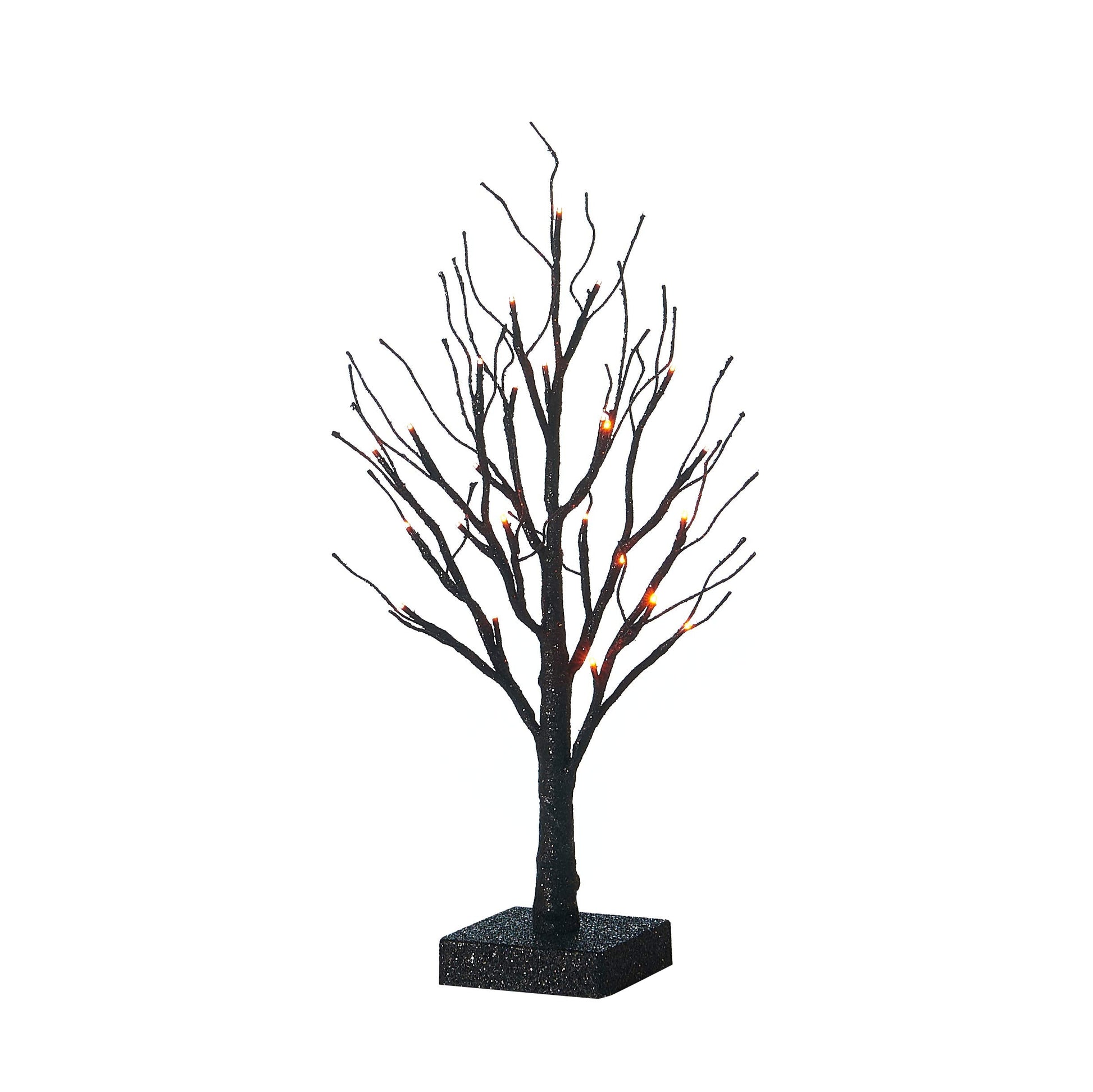 Hairui Lighted Tabletop Black Glittered Spooky Tree with Orange Lights 24 LED 18 Inches for Halloween Witch Decoration Battery Operated or USB Plug in Indoor Use