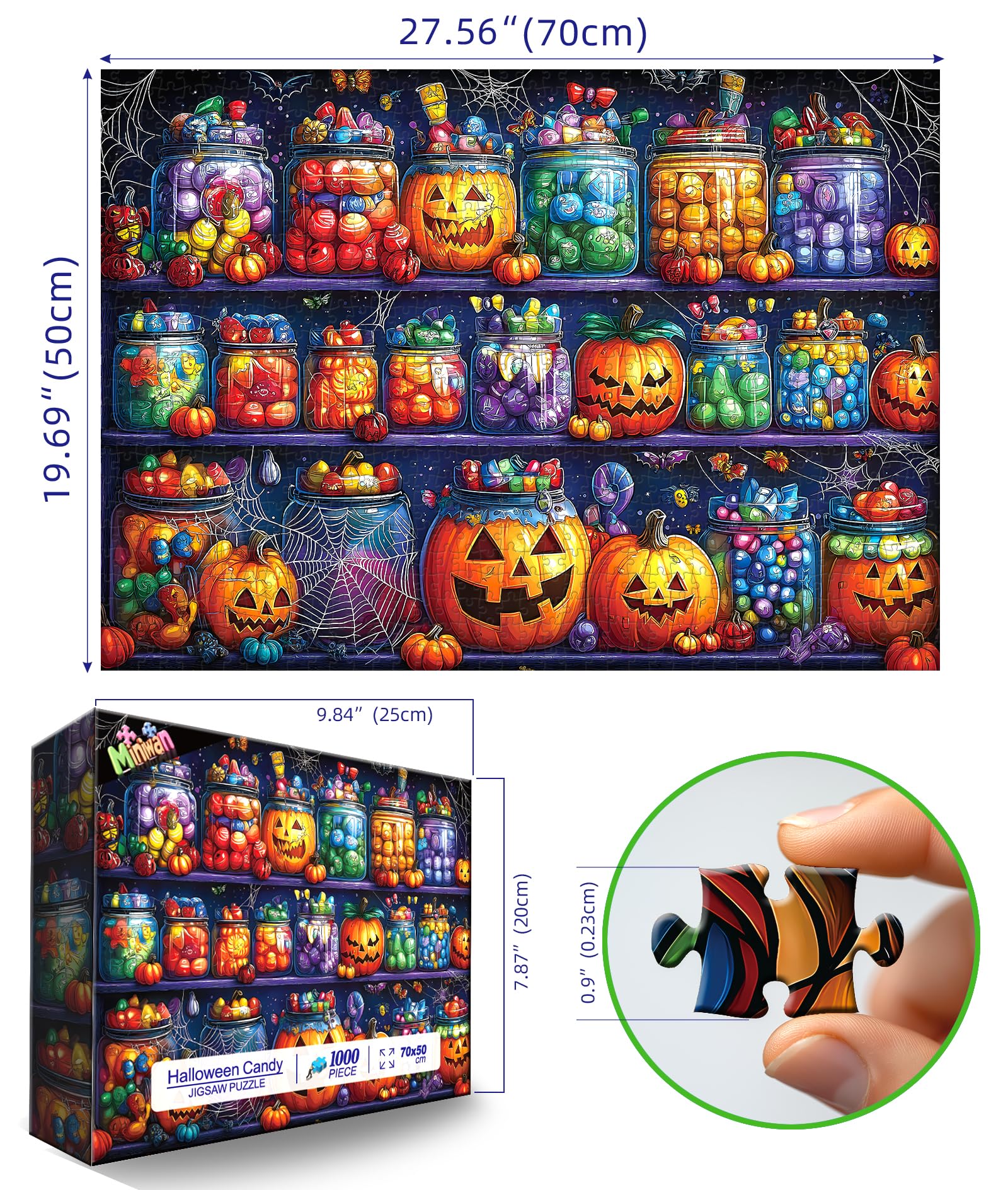 Halloween Candy Jars 1000 Piece Puzzle for Adults Spooky Night Mason Jars Challenging Jigsaw Puzzles for Adults Family Game Night (27"x19")