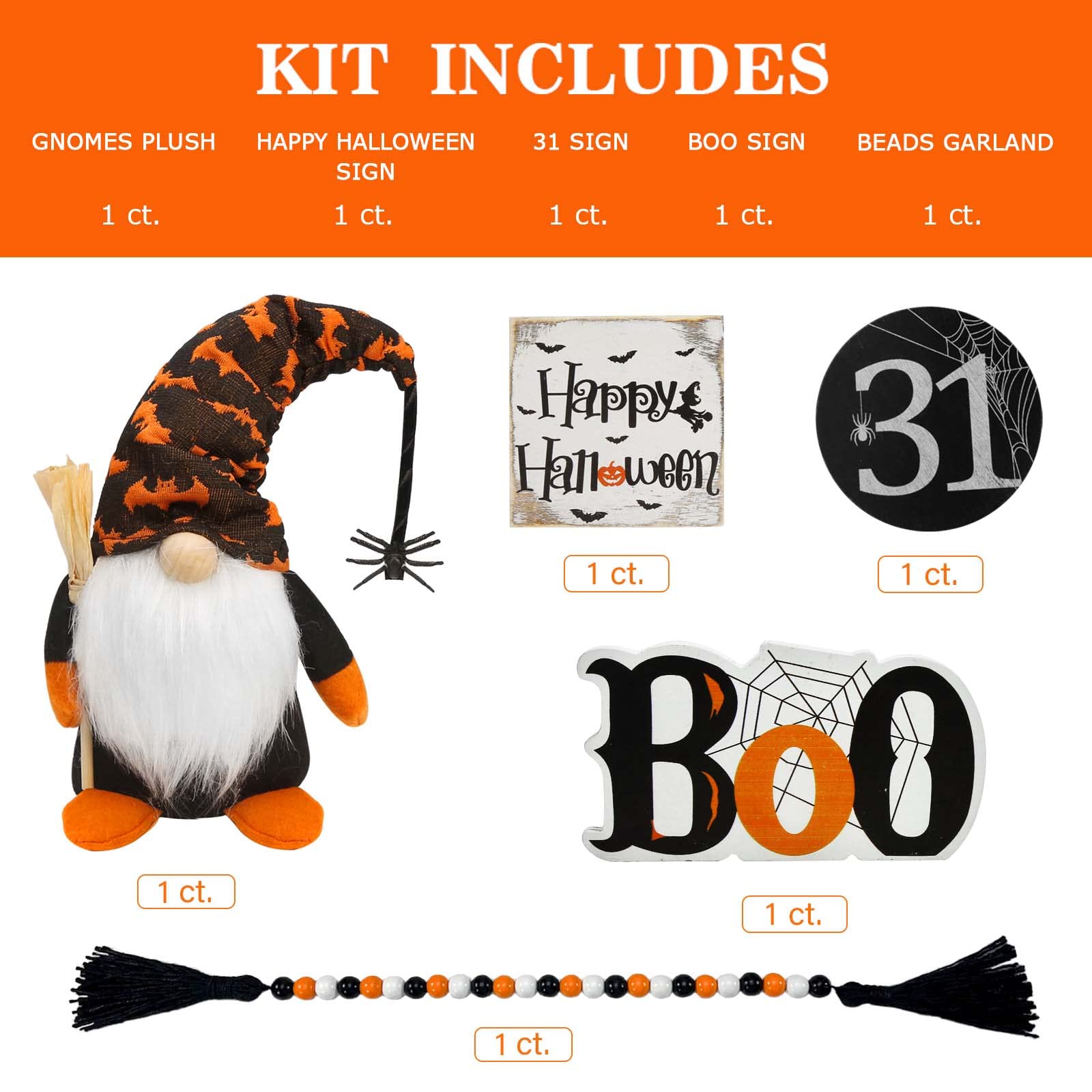 • This bundle set includes 3 wooden Halloween signs, cute gnomes plush and bead garland. (tiered tray NOT included)