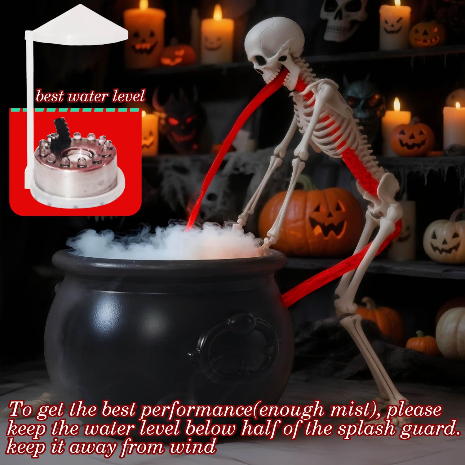 • WHAT YOU WILL GET: Mist maker fogger set includes all the useful accessories you could possibly need: mist maker fogger, 7.5' witch cauldron, splash guard(Effectively reduce the splash of the water drops), DIY Skeleton set(Can create a magical Halloween atmosphere).