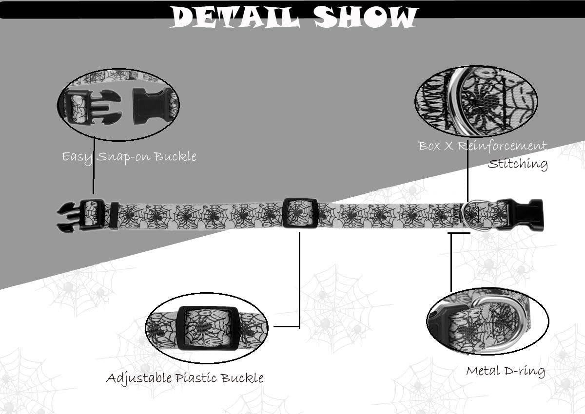 • Skeleton skull and spider web design are fulfilled with the pet collar, full of hoilday atmosphere