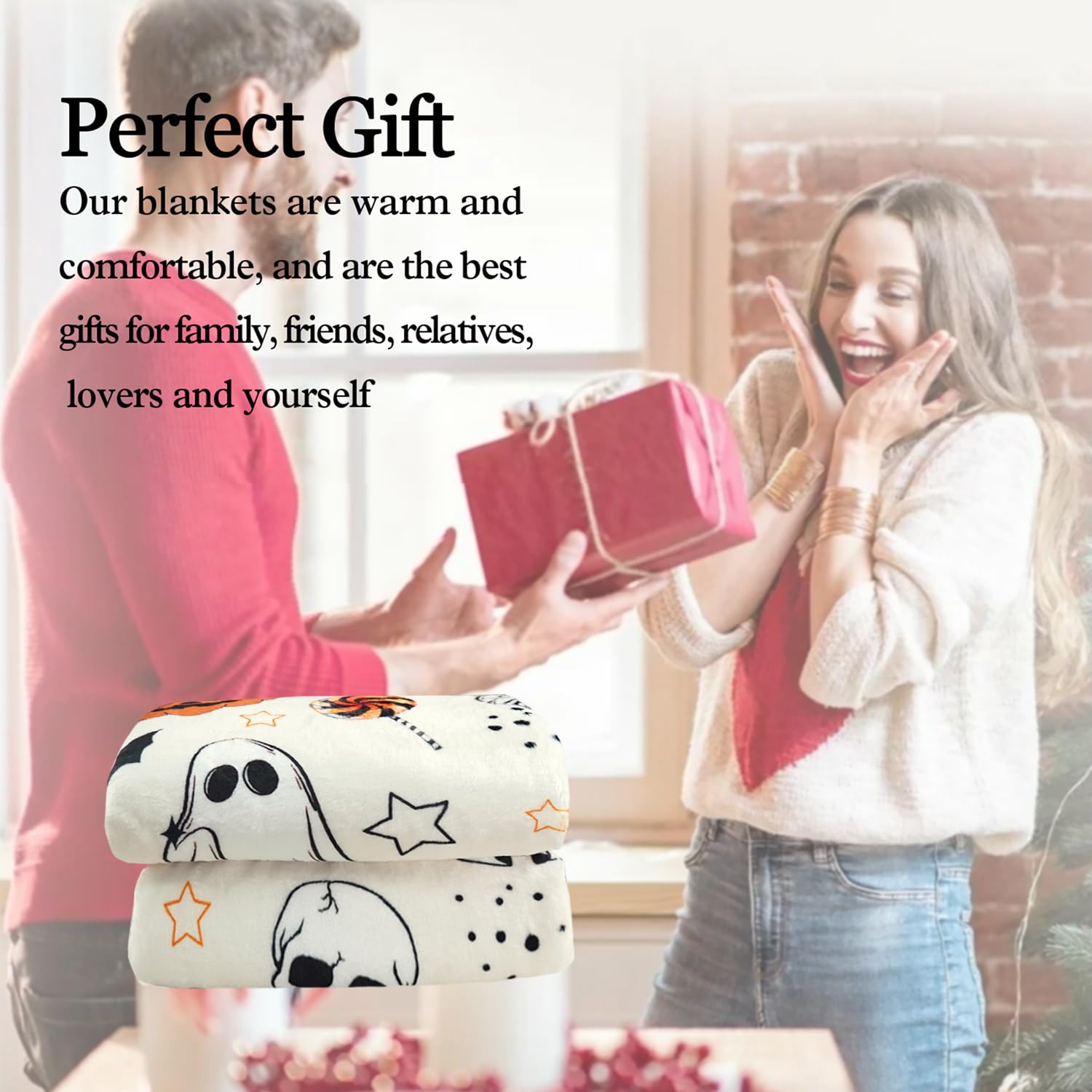 • Halloween Decor: Our halloween blanket creatively combines boo and ghost, with classic halloween elements such as skulls, spiders and bats,pumpkin background,beautiful and cute design,cozy up on the sofa or warm up by the fire with our ghost blanket,warm and cozy, it is the perfect halloween home decoration and halloween gift